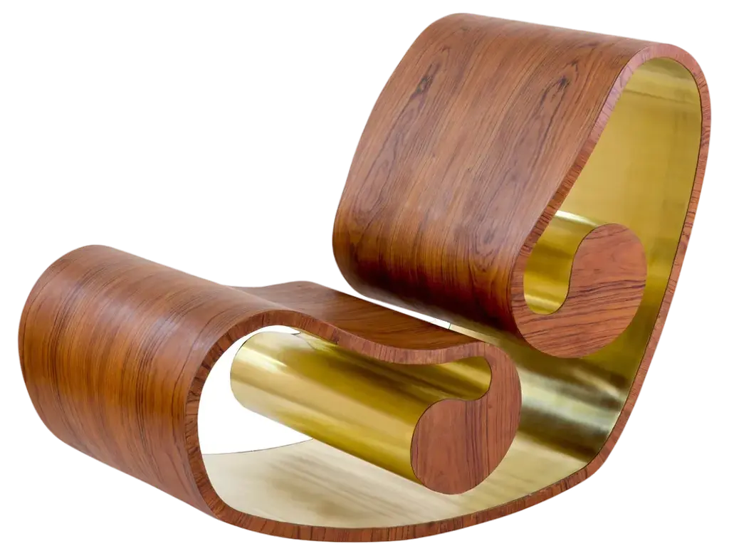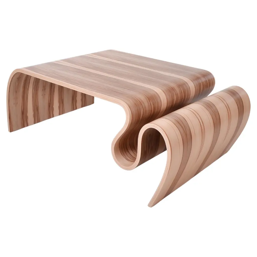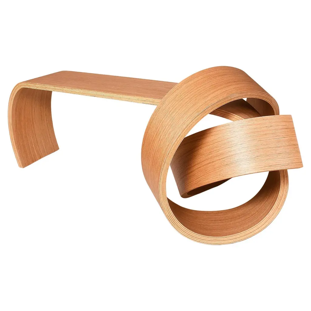 This bench has a very unique design, it's the result of many years of research on the technique of bent lamination. It's my best selling piece since a few years now, I've made several ones with different woods and sizes and my customers loves it! It is fully usable, it can support around 400 lbs. The one showed on the pictures is made with walnut veneer with an oil finish. It can also be finished with lacqer, that would make it looks a bit lighter.