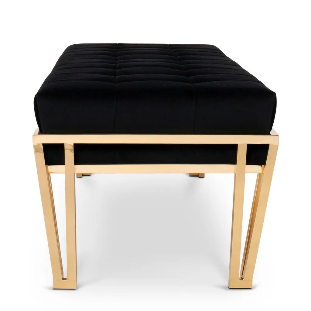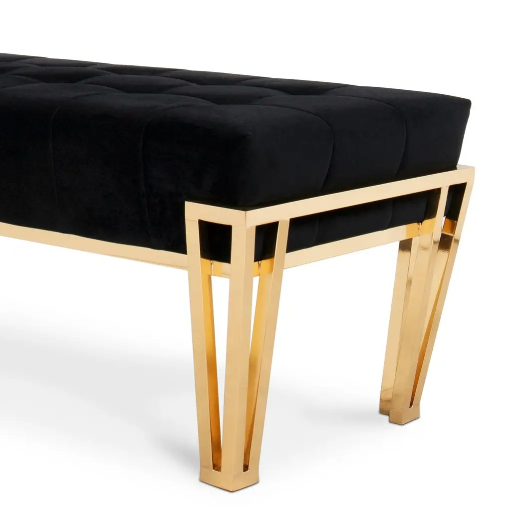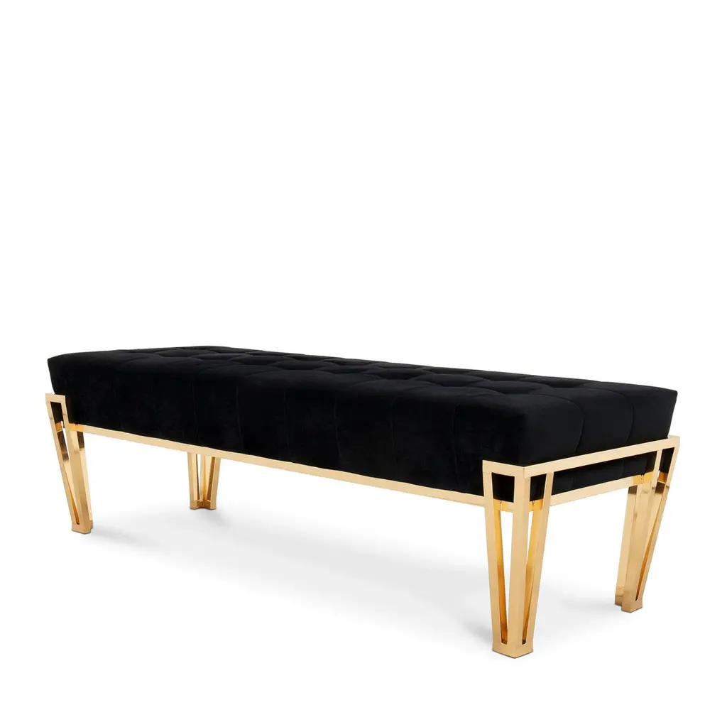 Bench Williams with solid wooden structure upholstered and coveredwith black velvet fabric, bench with solid brass structure with 4 feet in polished finish. Also available with other fabrics on request.