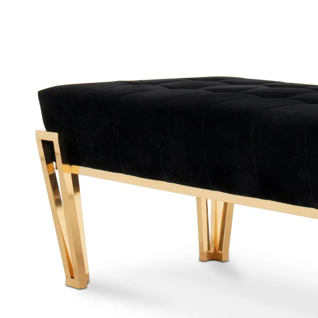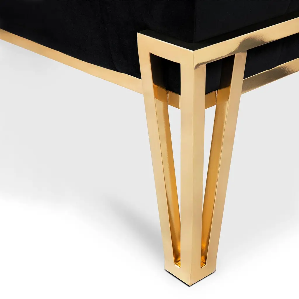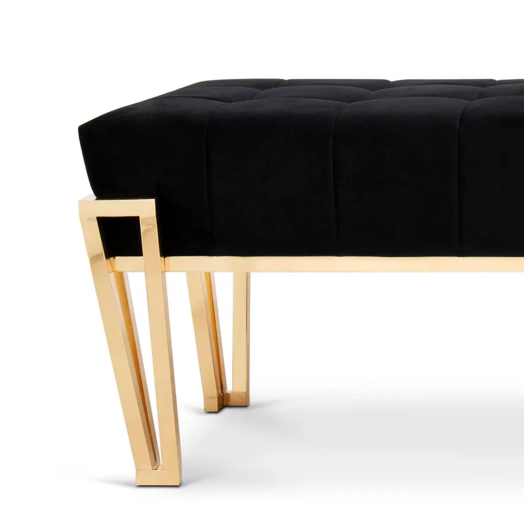 Bench Williams with solid wooden structure upholstered and coveredwith black velvet fabric, bench with solid brass structure with 4 feet in polished finish. Also available with other fabrics on request.