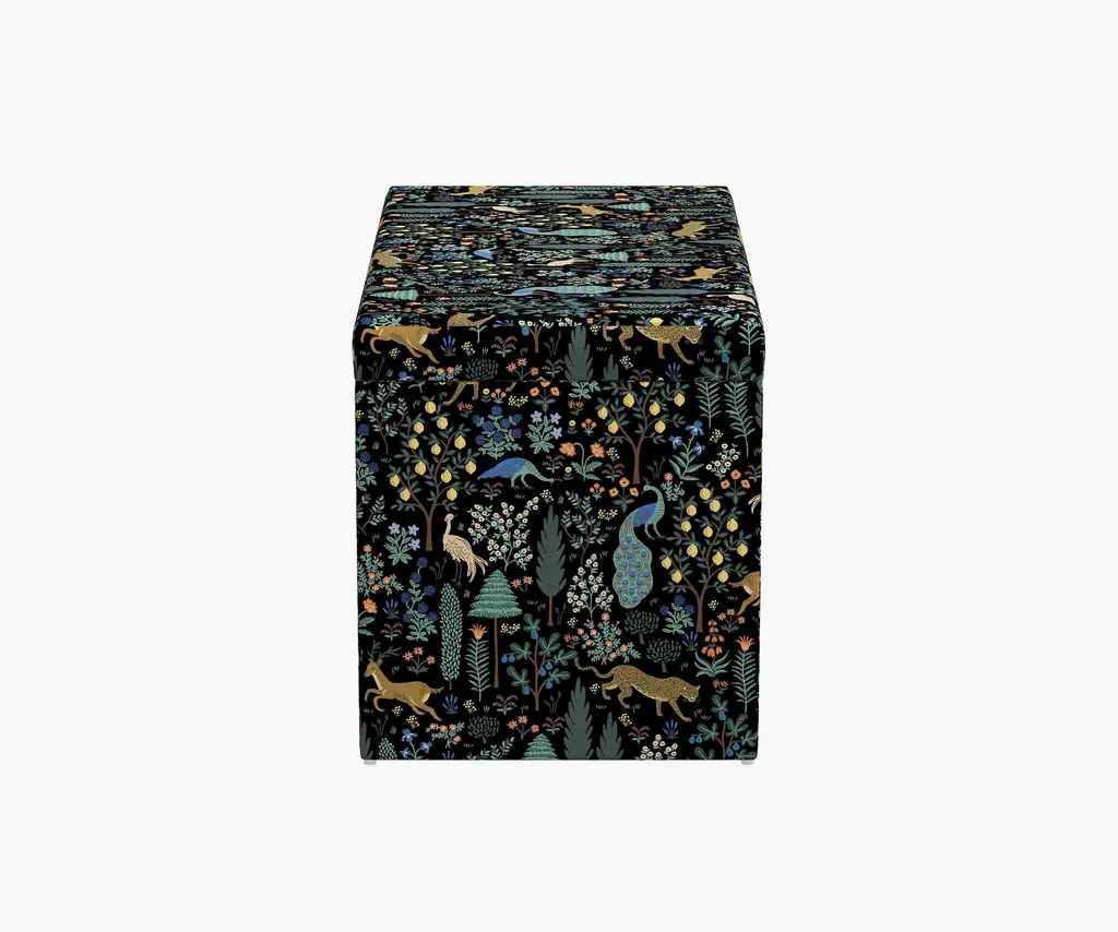With clean lines and a removable lid, the Willie Storage Bench is a functional addition to any space, perfect for tucking away toys or extra linens. Select from 17 illustrated fabrics for your made-to-order piece, crafted in Chicago by Cloth & Company.