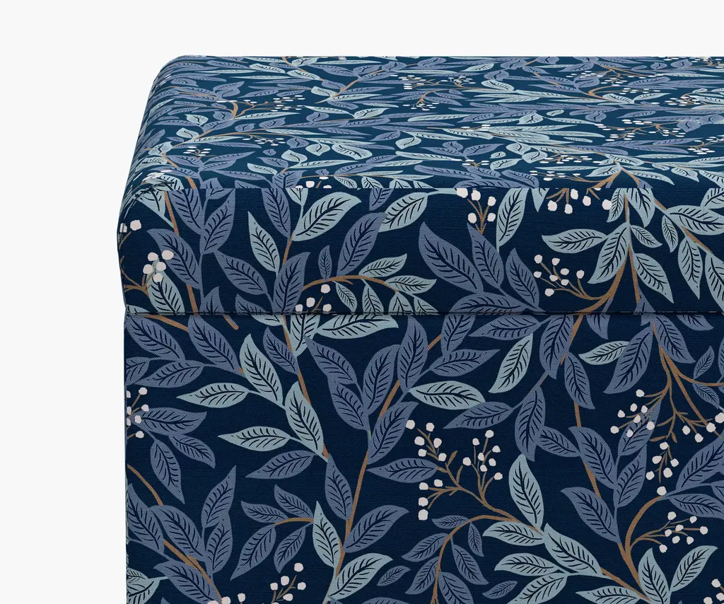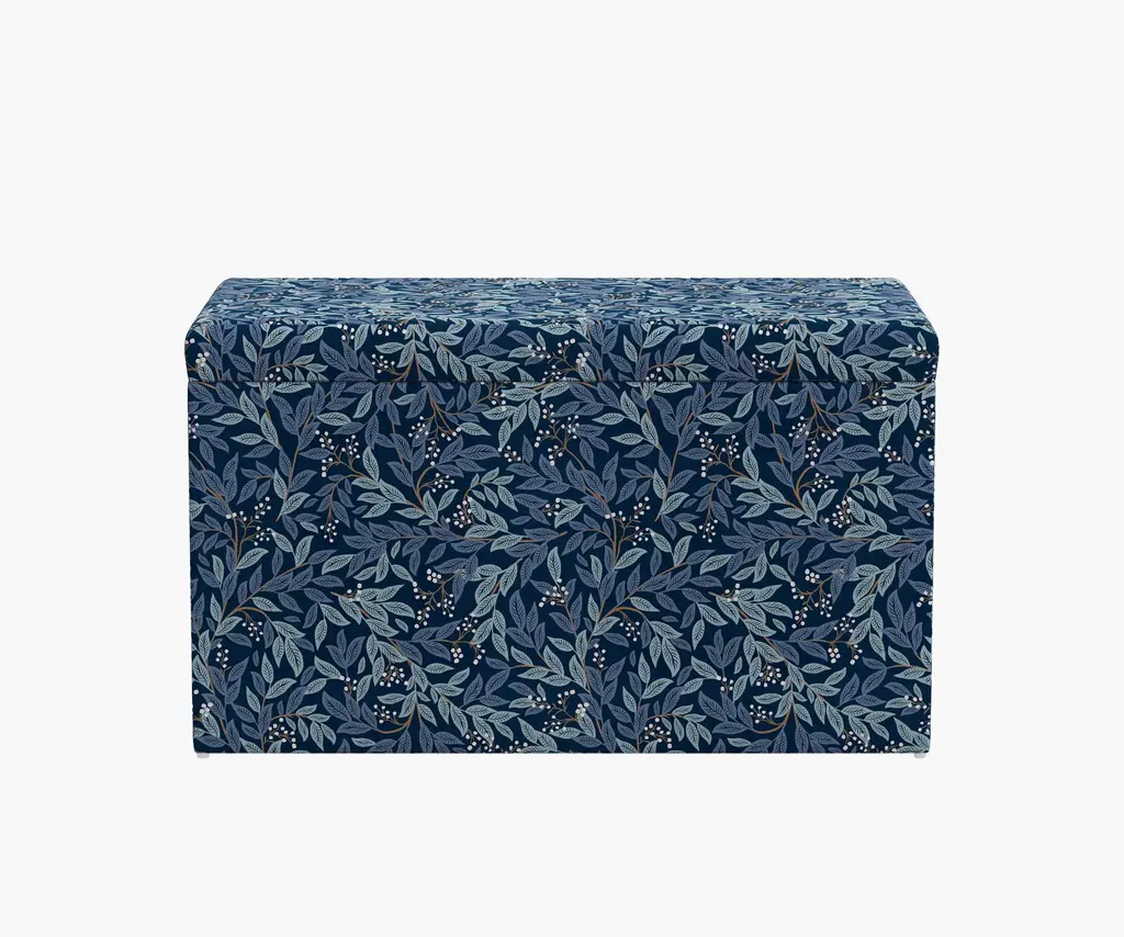 With clean lines and a removable lid, the Willie Storage Bench is a functional addition to any space, perfect for tucking away toys or extra linens. Select from 17 illustrated fabrics for your made-to-order piece, crafted in Chicago by Cloth & Company.