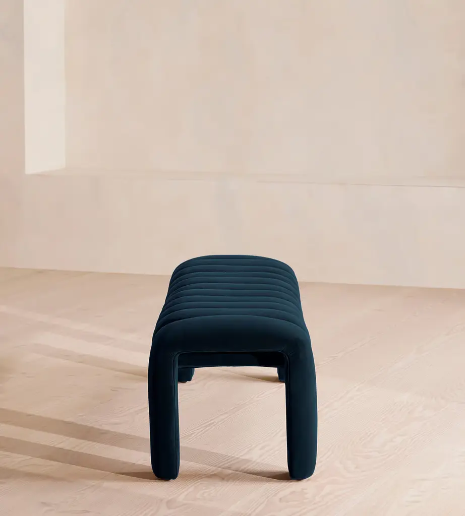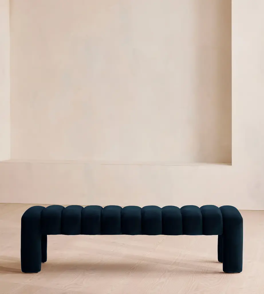 Our Willis bench adds a touch of vintage-inspired glamor to any interiors scheme with channeled seat detail and soft, velvet upholstery for a textural finish. Inspired by Holloway House, this piece is ideal for placing in an entrance, living room or at the end of the bed.