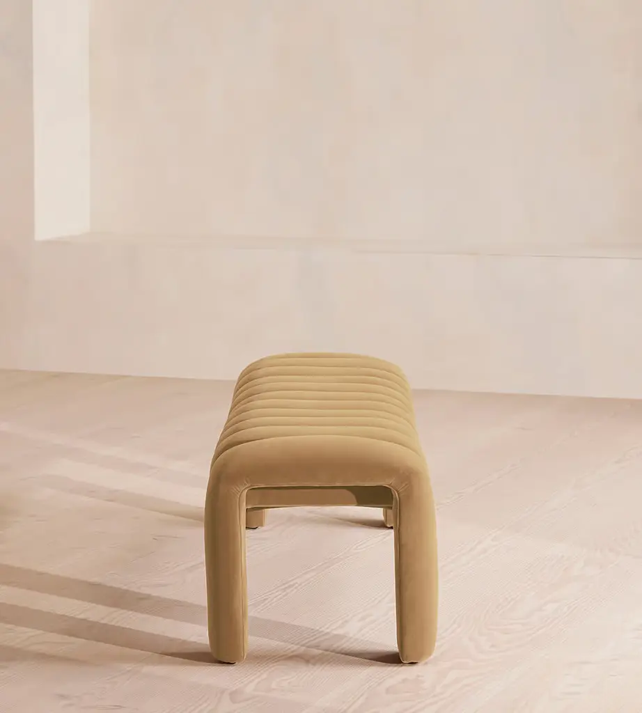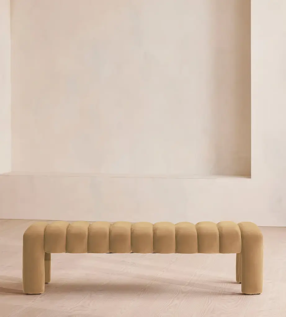 Our Willis bench adds a touch of vintage-inspired glamor to any interiors scheme with channeled seat detail and soft, velvet upholstery for a textural finish. Inspired by Holloway House, this piece is ideal for placing in an entrance, living room or at the end of the bed.