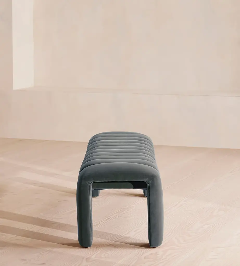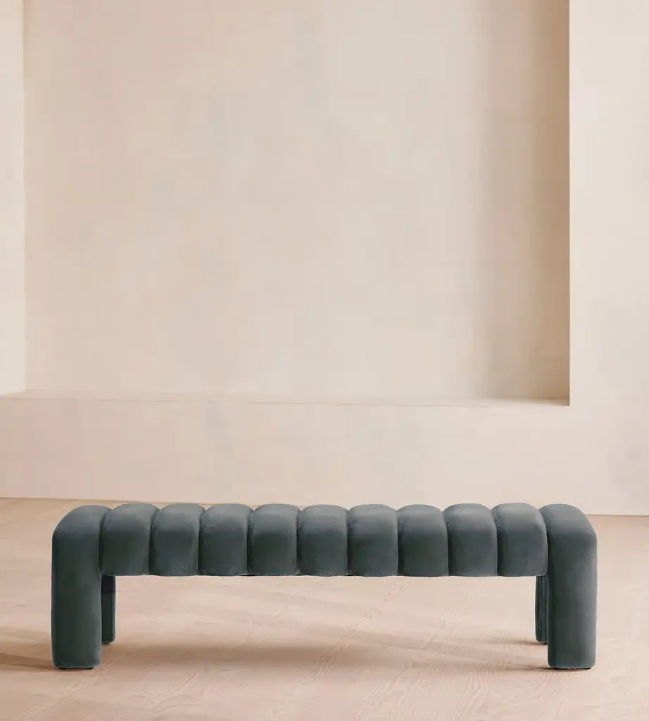 Our Willis bench adds a touch of vintage-inspired glamor to any interiors scheme with channeled seat detail and soft, velvet upholstery for a textural finish. Inspired by Holloway House, this piece is ideal for placing in an entrance, living room or at the end of the bed.