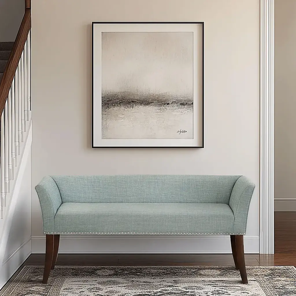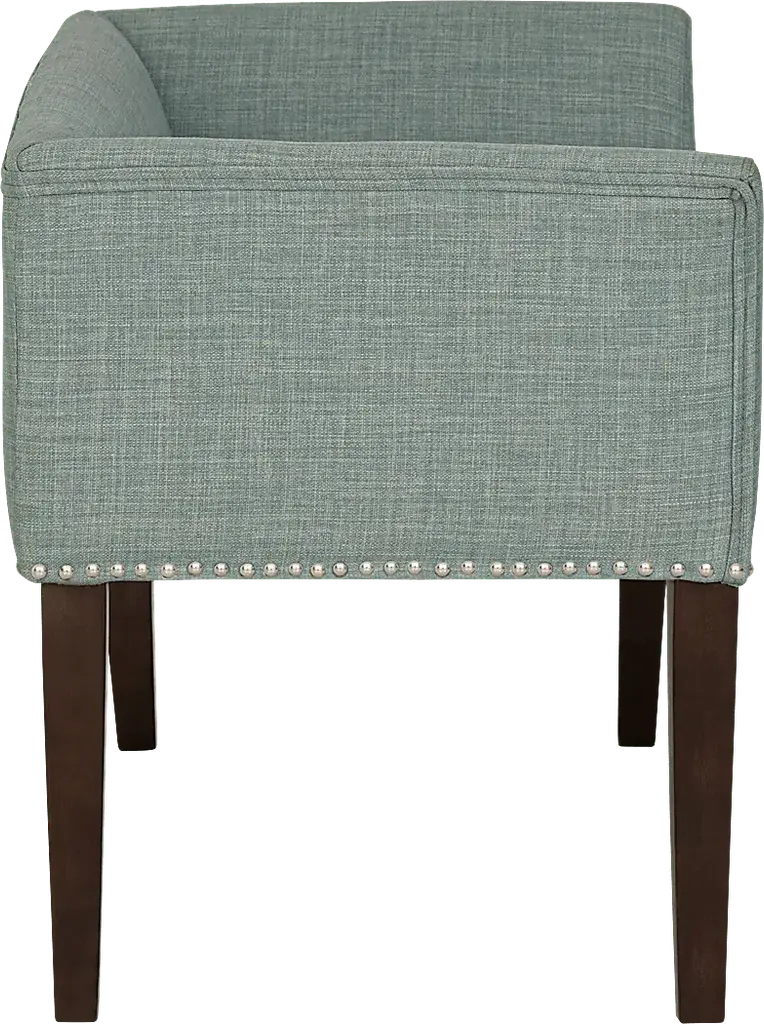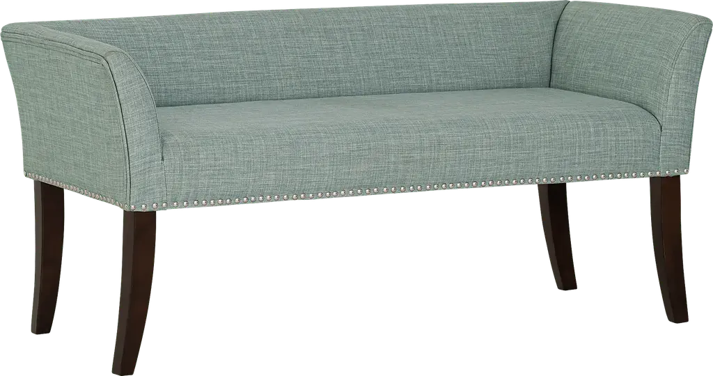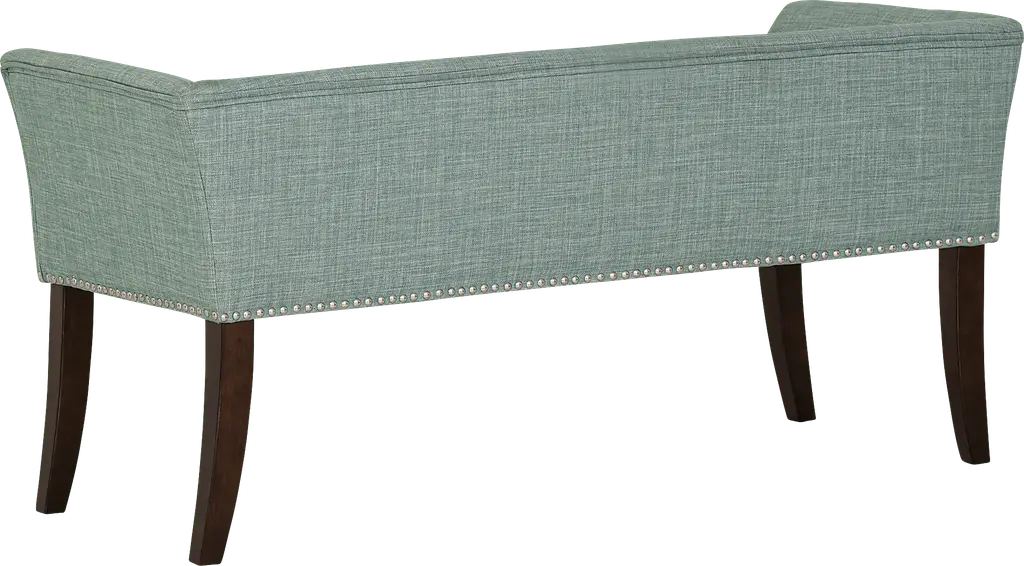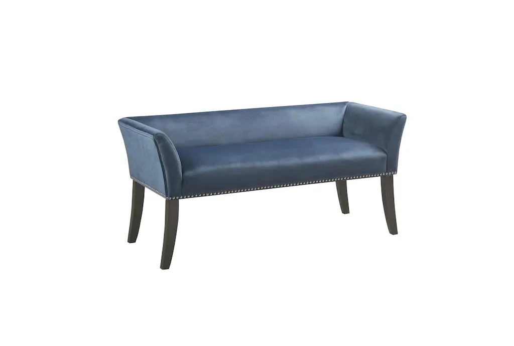 Elevate your space with the Wolfdew blue accent bench. Compact yet elegant, this versatile bench features a low back and flared arms, highlighted with sleek nail head trim for a touch of sophistication. Designed for both style and comfort, this bench offers supportive seating, making it perfect for end-of-bed placement or a welcoming addition to entryways, hallways, living room, bedroom and more. Bring home this timeless piece and transform any room with ease. Customer assembly is required.