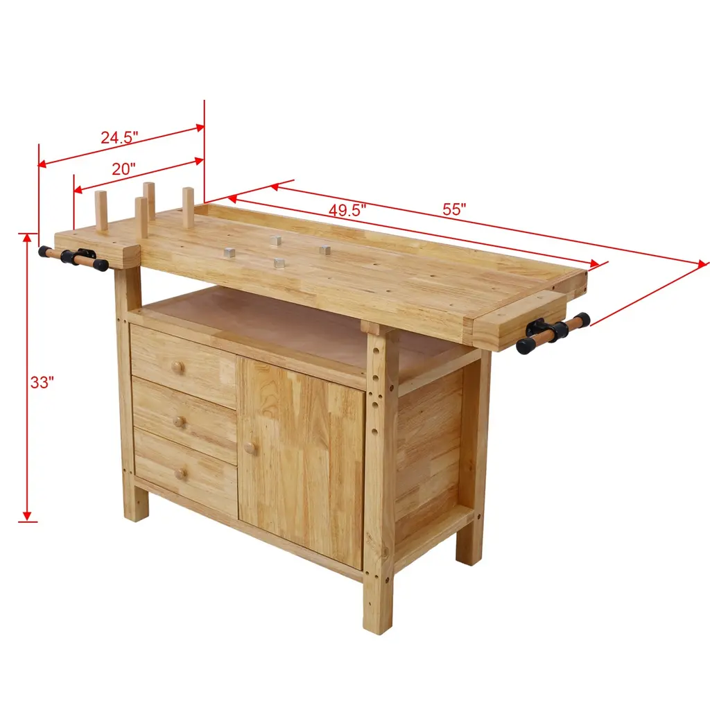 Wood Workbench - Wooden Workbench For Garage Workshop And Home - Natural
