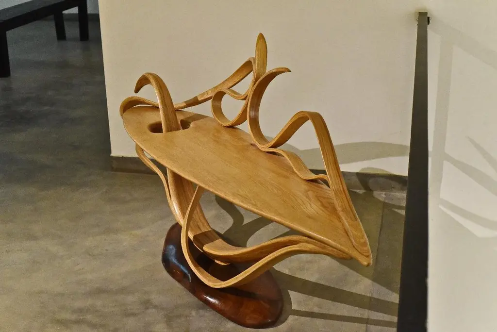 This piece is a combination of various design elements and techniques that have been honed over the years, along with elements that are unique to this piece. This piece is a display of wood bending, sculpting and joinery techniques that have been discovered through the Vrksa and Fluentum Series of works. The whole piece is handcrafted and is an expression of the Studio's unique design aesthetic.The Studio has taken its exploration of wood further with the Fluentum Series. This Series uses techniques and skills learned over the years to create works that embody details that are unique to the Studio's design aesthetic and the craft of bending wood. These techniques allow the natural flow of the wood to take the reins of design; therefore, no two pieces are exactly the same, making each piece unique.Other points worth knowing:- The design may vary slightly from the piece in the pictures since each piece is handmade.- You can choose from an array of finishes.- The dimensions of the piece are customizable.