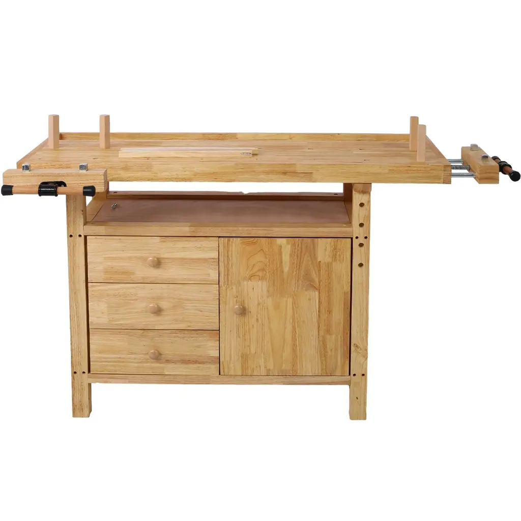 Wooden Workbench With Drawers For Garage Workshop And Home - Natural
