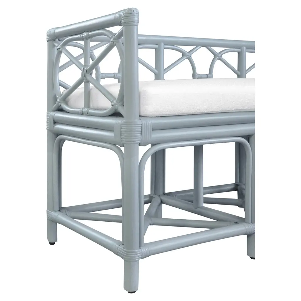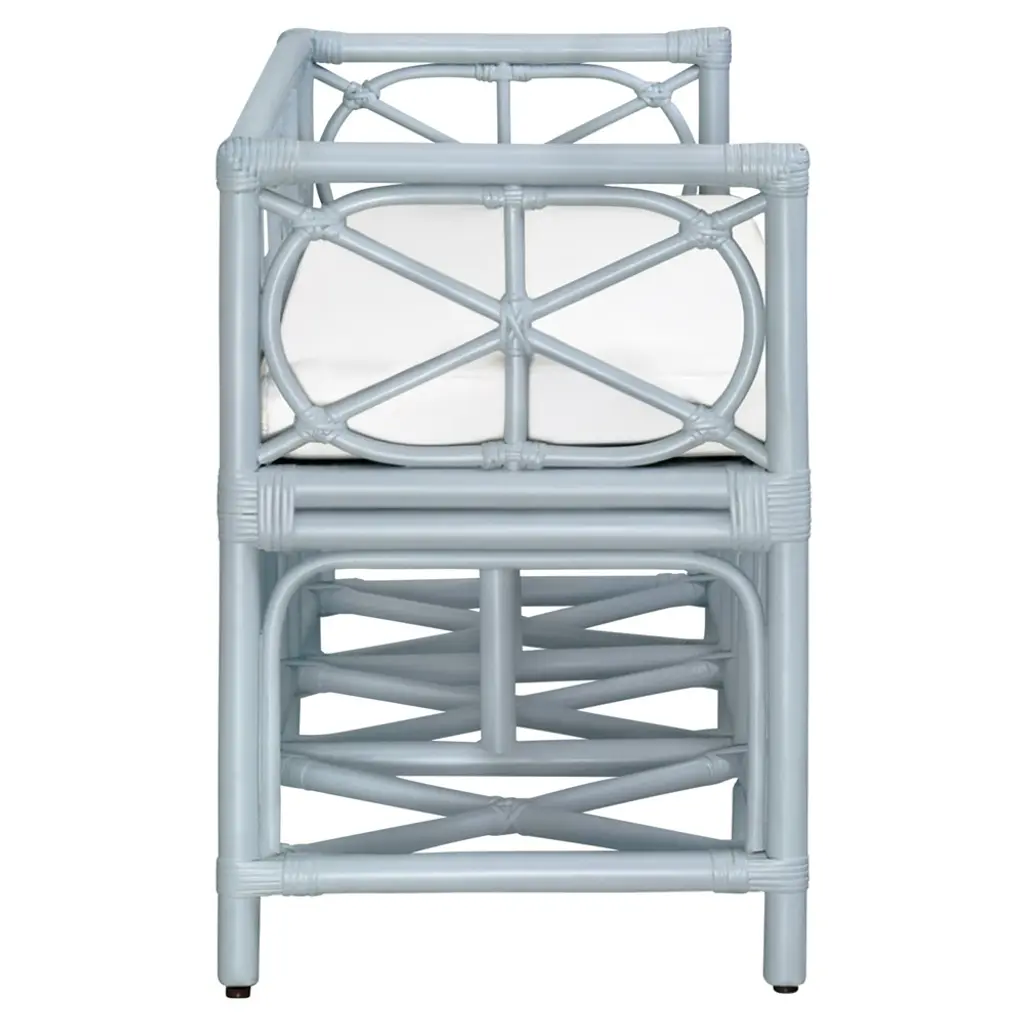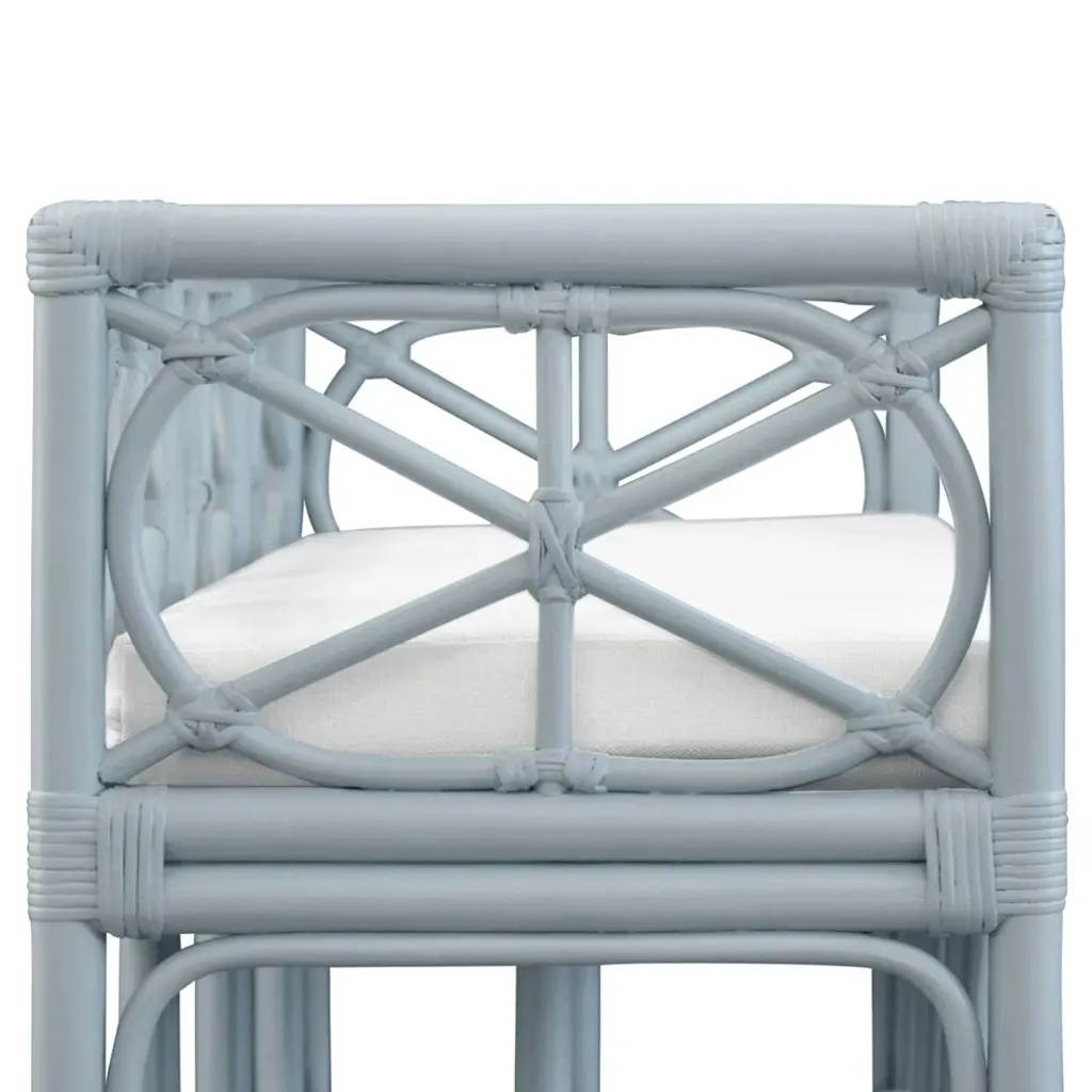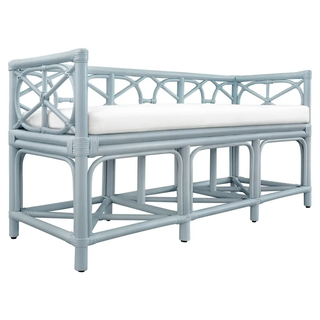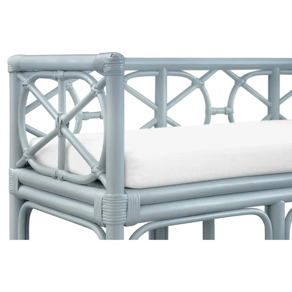 Worlds Away Ferguson Coastal Beach White Performance Light Blue Rattan Entryway Bench