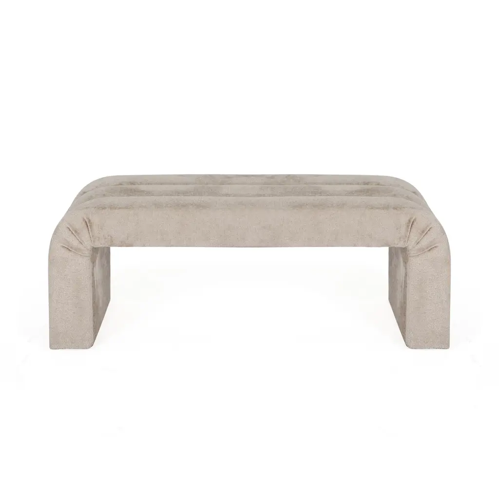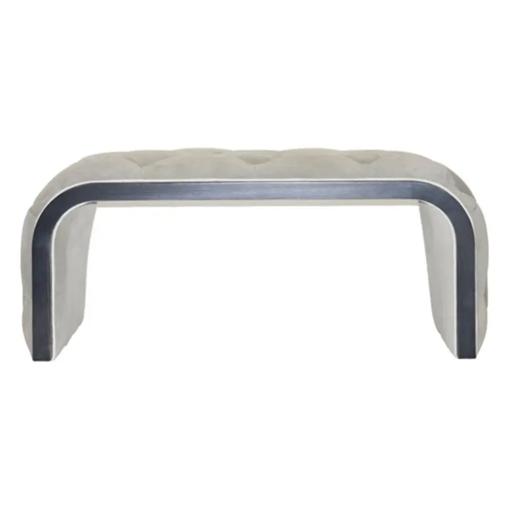This waterfall style bench by Worlds Away delights with its graceful curves and sculptural form. Use at the end of a bed or an entryway, then introduce as extra seating when you’re playing host.