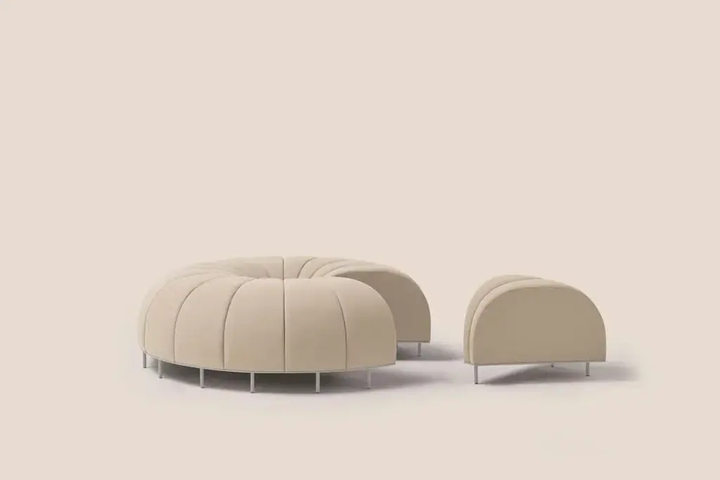 Worm bench iii by pepe albargues dimensions: d 65 x w 104 x h 50 cm materials: plywood, foam cmhr, iron available in different colors. Custom modules convinations available 8 x curved module 22,5° worm is an amusing bench that can evolve and change according to the needs of each space. This is the first modular system of missana, a functional bench suitable for any room and atmosphere. The worm bench is made of just three modules: the end module, the straight module and the curved module 22,5°. this piece is attributed to the mentioned designer/maker. It has no attribution mark and no official proof of authenticity, however it is well documented in design history. I take full responsibility for any authenticity issues arising from misattribution