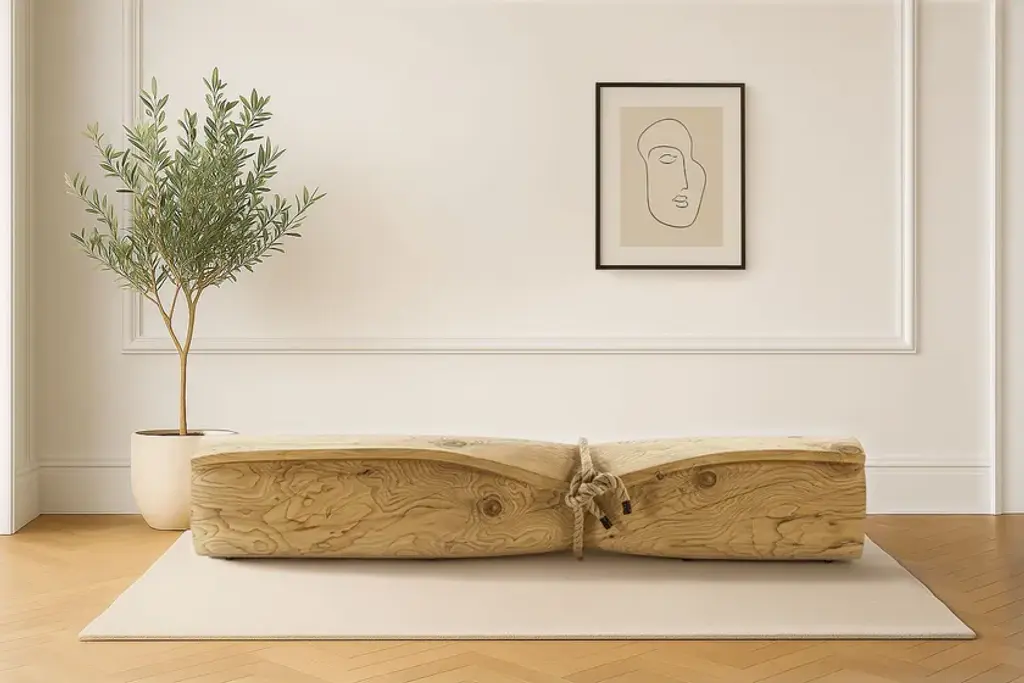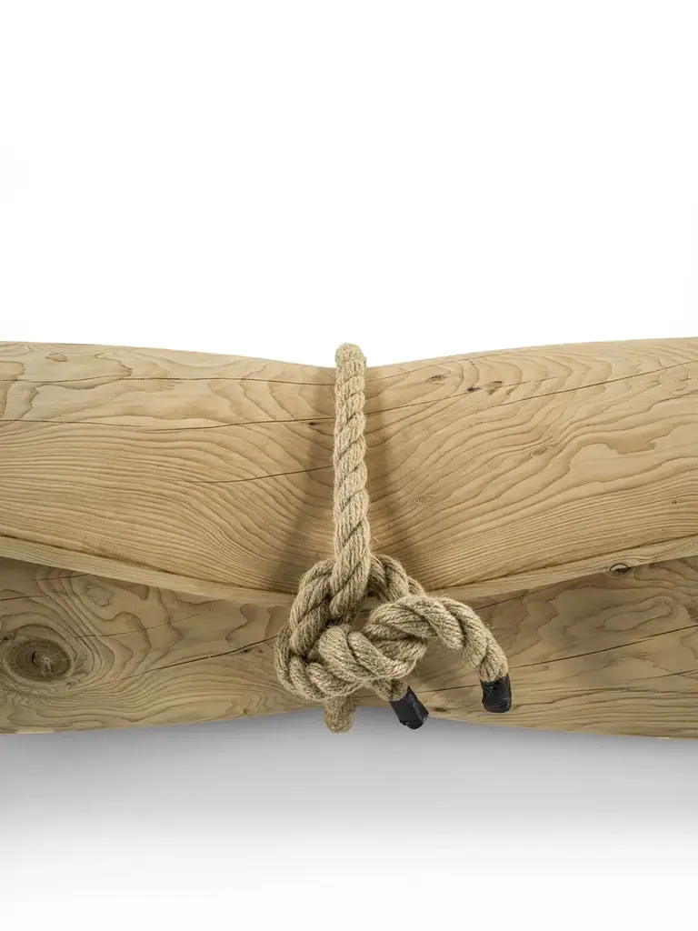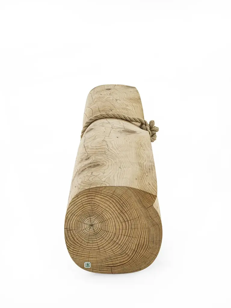 WRAP is a bench in solid fragrant cedar wood, carved from a single block.The design stands out for its sinuous and enveloping shape, inspired by a rolled sheet of paper, creating a contrast between the solidity of the wood and the visual perception of lightness and softness.A detail in nautical rope, slightly off-center, emphasizes this effect, giving the impression of holding the volume in a wrapped position.*For outdoor use, only the A7 cedar finish is available.