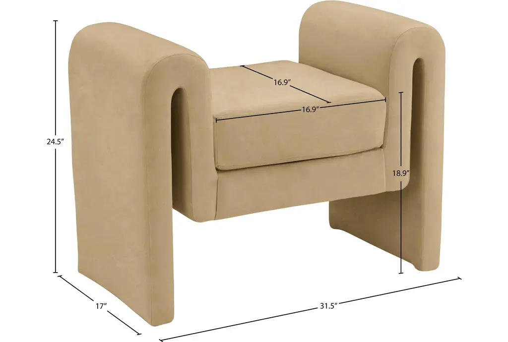 The Zinnia Camel Velvet 32" Wide Upholstered Bedroom Bench is the perfect addition to any bedroom or entryway. Its modern style and soft camel color bring a touch of warmth and sophistication to your home. With velvet upholstery and engineered wood construction, this bench is both comfortable and durable.