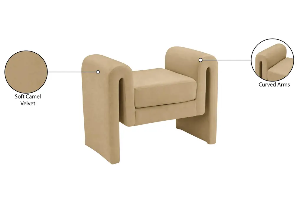 Zinnia Camel Velvet 32" Wide Upholstered Bedroom Bench | Entryway