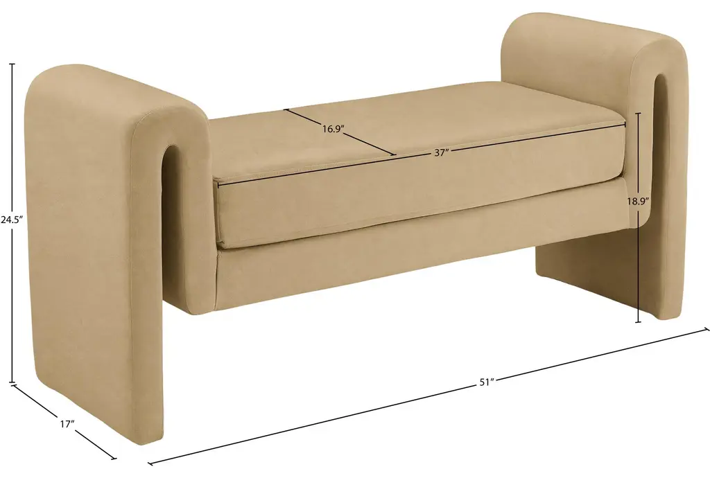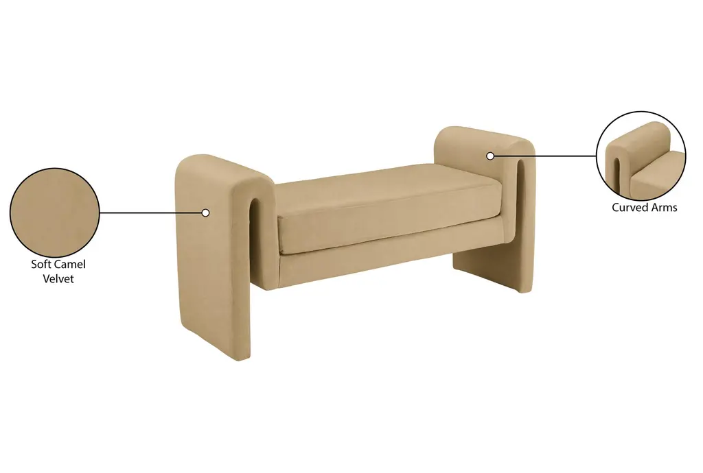 Zinnia Camel Velvet 51" Wide Upholstered Bedroom Bench | Entryway