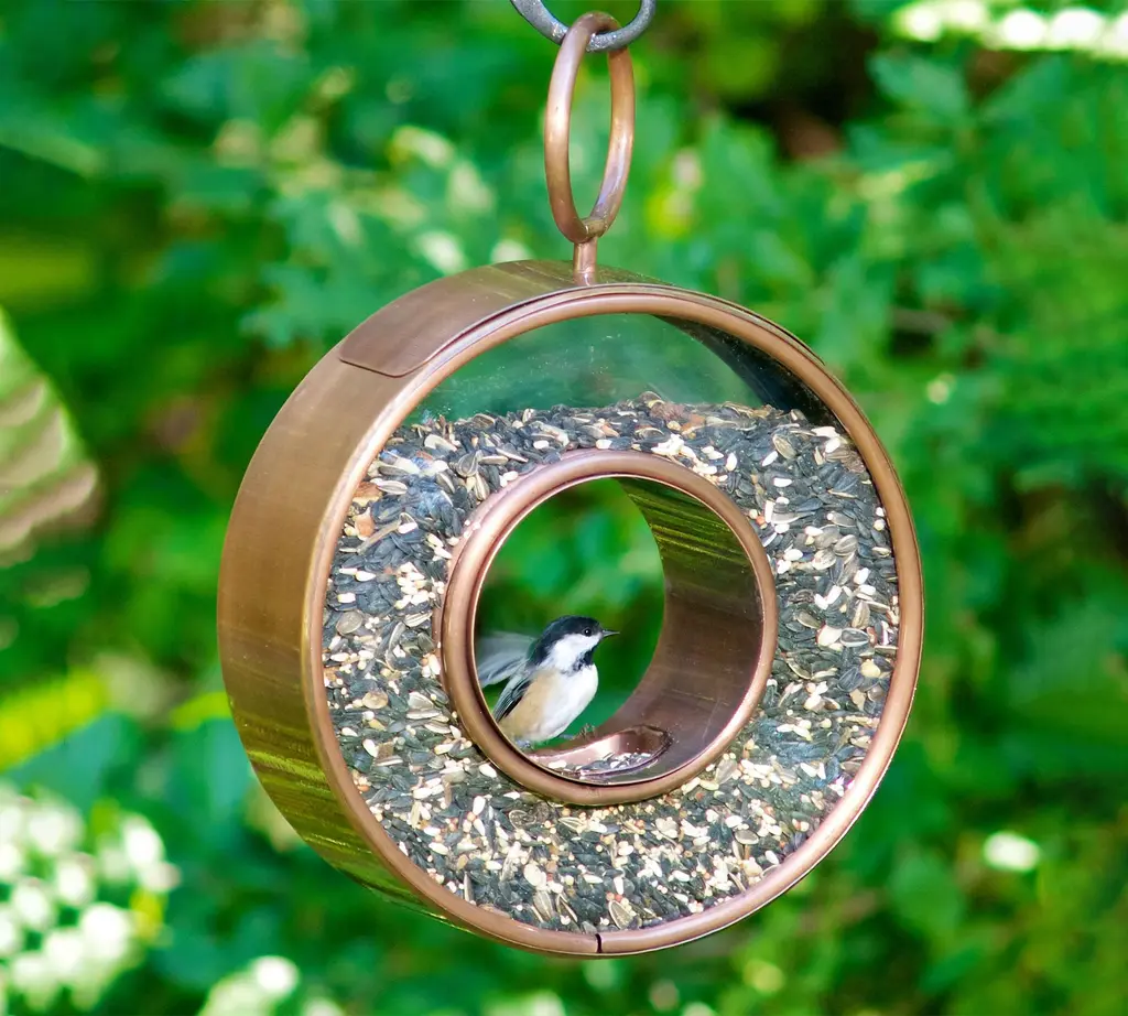 Circle Shaped Copper Fly Thru Bird Feeder