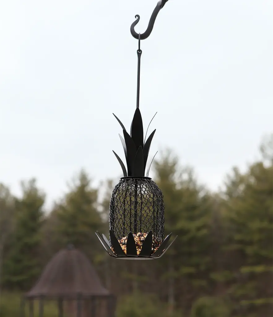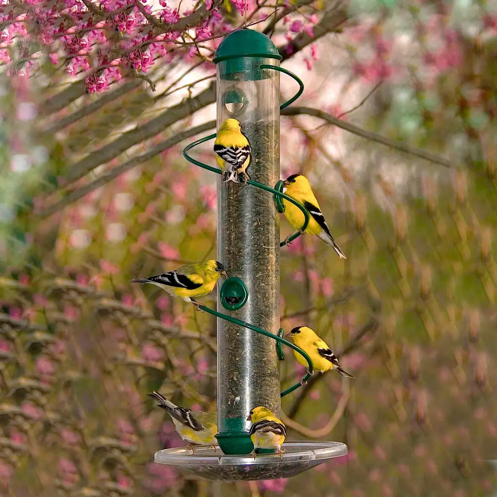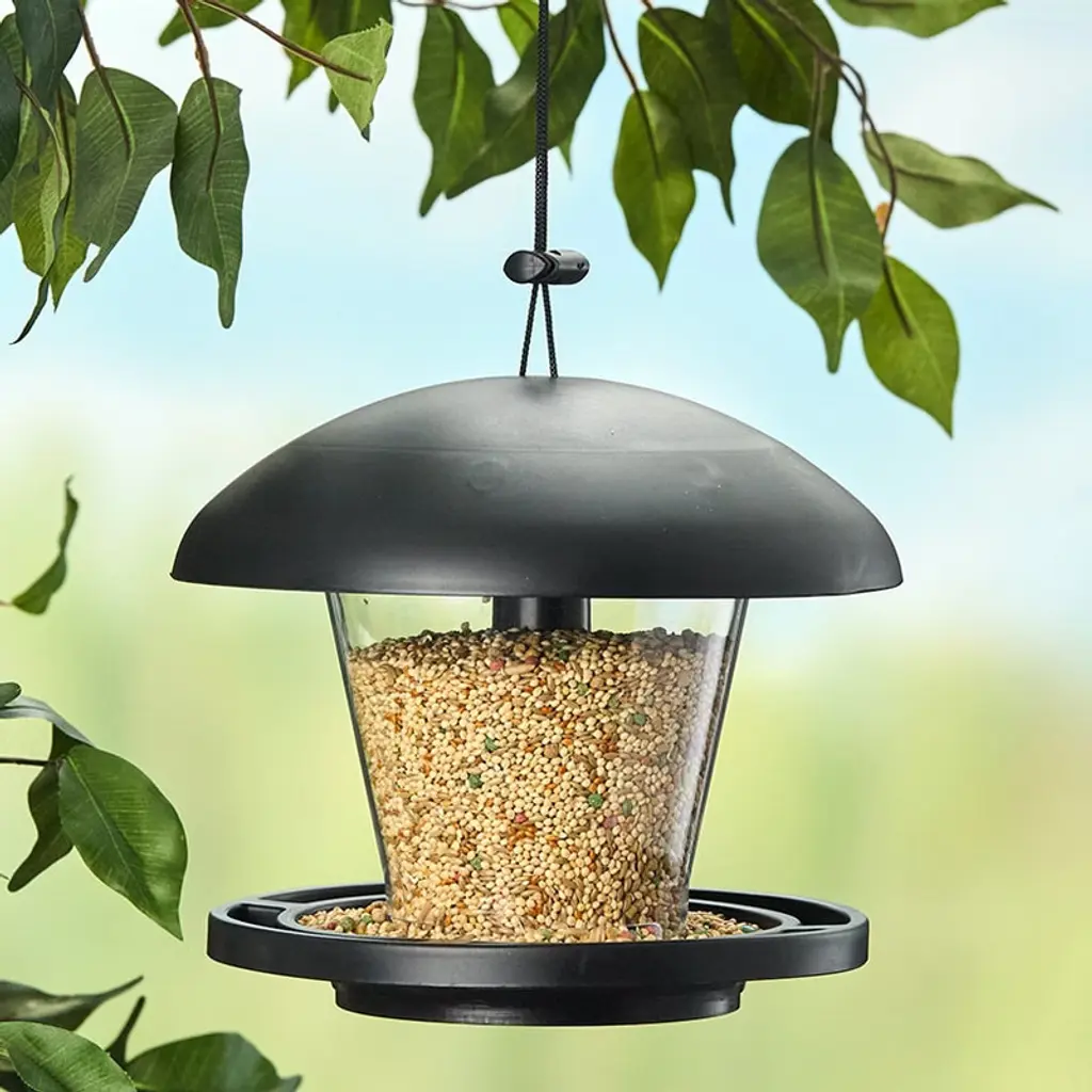 A pagoda-style, verdigris copper roof and feeding tray lend polish to this hand-crafted bird feeder for the garden.