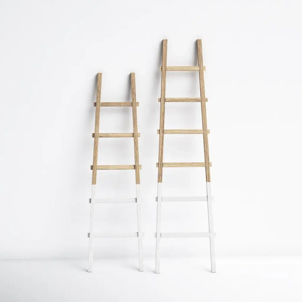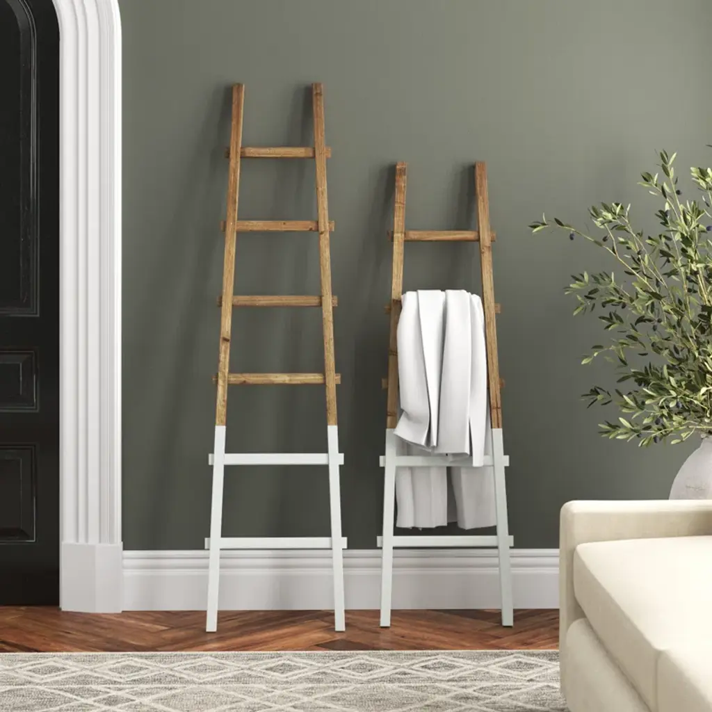 Take it up a notch. Crafted with scratch-resistant straight legs, this blanket ladder infuses your space with a modern vibe. Its design is not just chic but also impressively durable, ensuring it stays new season after season. Ideal for draping towels in the bathroom or throws in the living room, it's a versatile piece that adds a touch of contemporary charm wherever it stands. Plus, the rubber stoppers at the base prevent sliding and protect your floors. A real space-saver, this ladder makes organization a breeze.