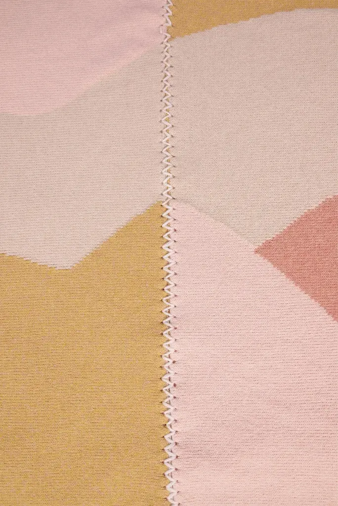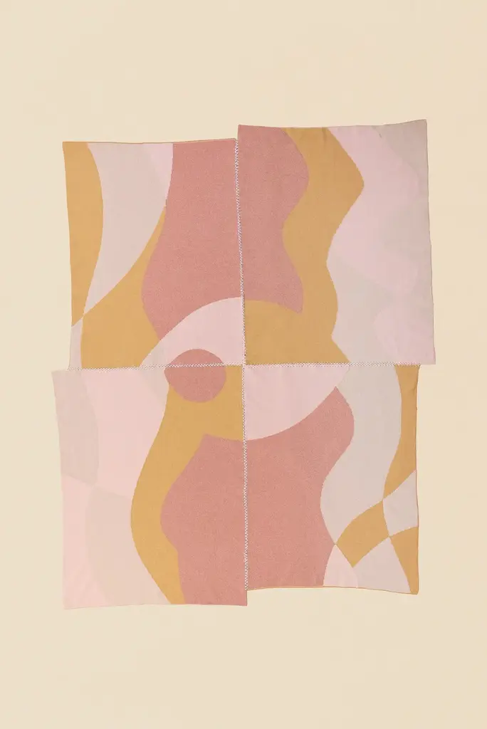 With its abstract design, this sustainable knitted blanket becomes the focal point of any space, adding a colourful and modern touch to your home decor. Composed of four individually knitted parts, it is carefully hand-stitched, combining the best of modern technology and traditional craftsmanship. This unique piece is not only a design statement but also part of a social project in collaboration with ngo hops in north macedonia. limited edition - produced locally in our berlin studio with zero waste. material 100% rws certified wool (non-mulesing) care only dry cleaning.