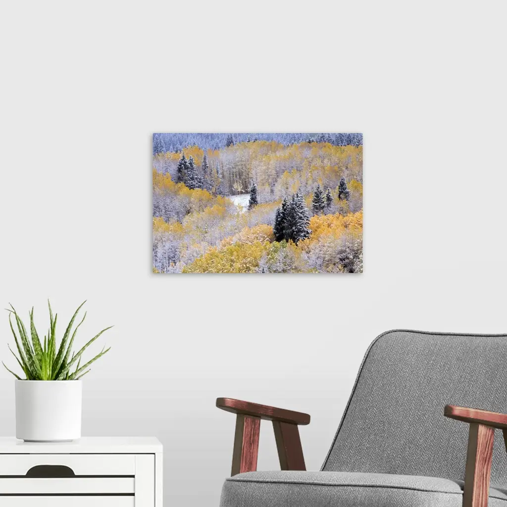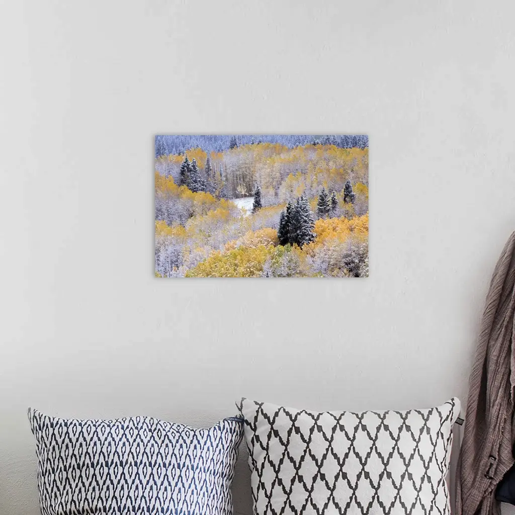 Aspens And Firs Blanketed With Snow wall art for home and office decor. Discover canvas art prints, photos, mural, big canvas art and framed wall art in GreatBigCanvas.com's varied collections.