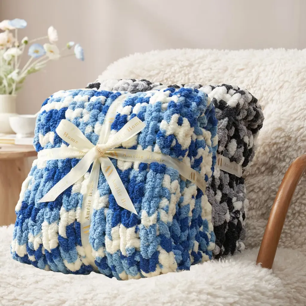 Aurora - Baby Knit Blanket - Ultra-soft High Quality Cotton - Blue