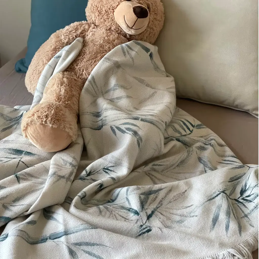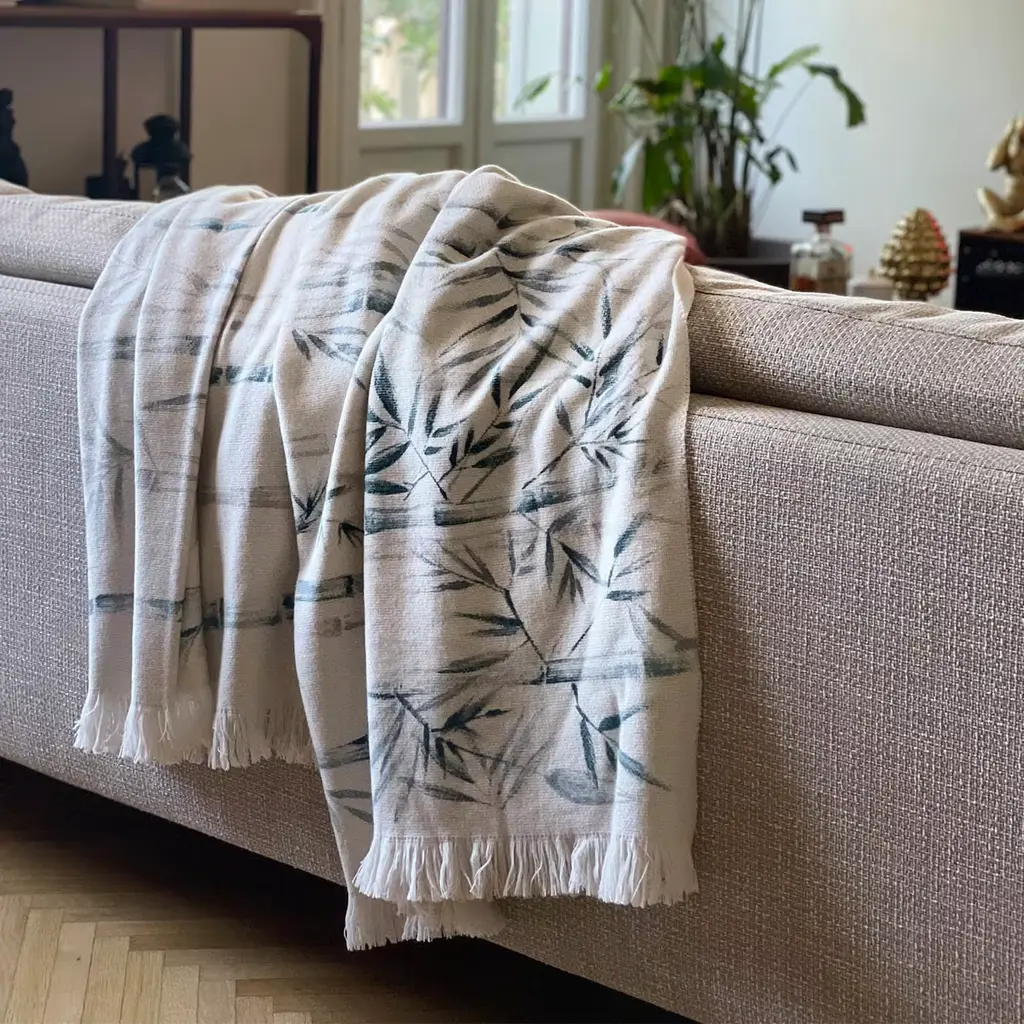 Bamboo Fringed Off-White Handpainted Blanket