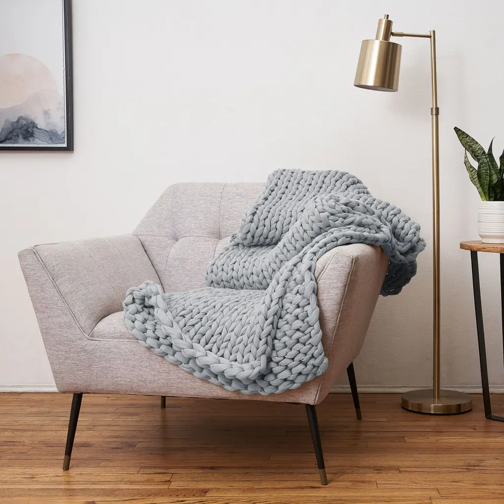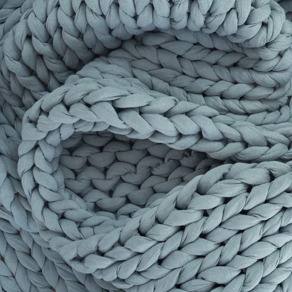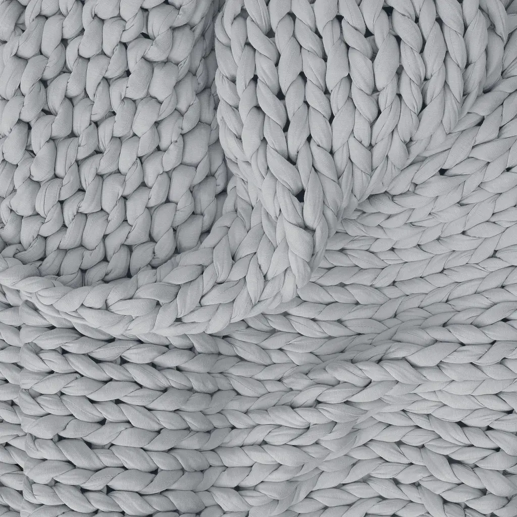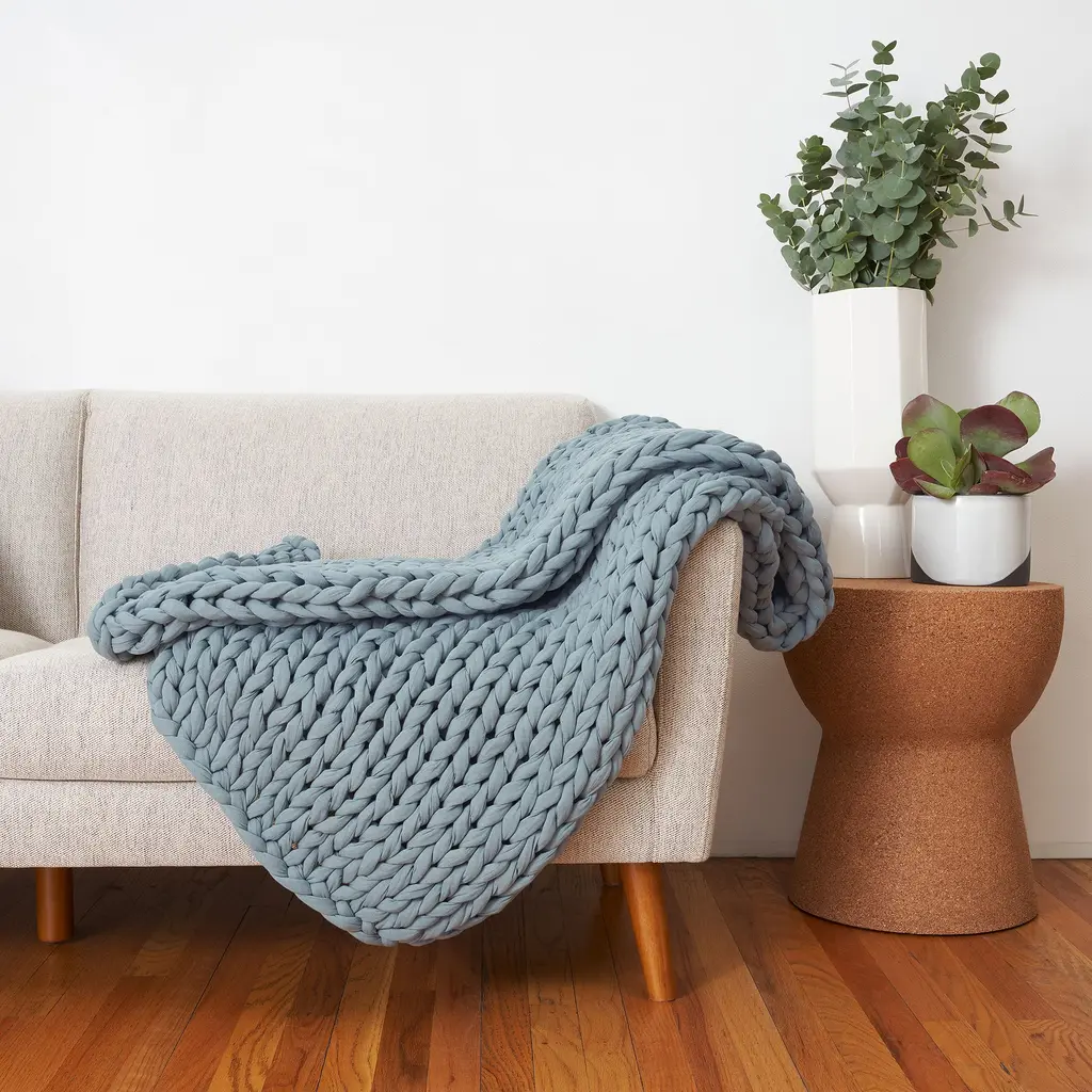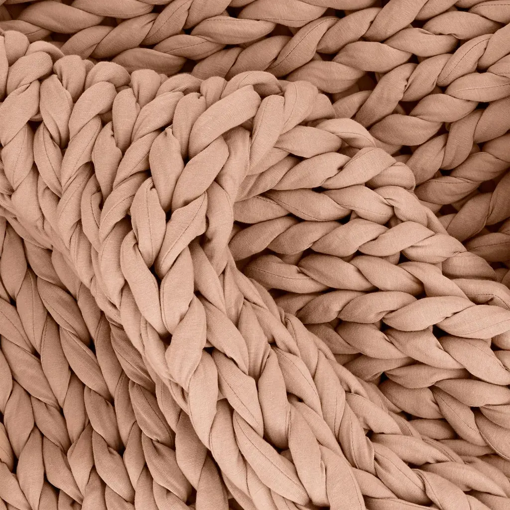 Weighted blankets help you relax anywhere. Hand knit from TENCEL™ and organic cotton. Feels silky soft and cool to the touch. Made in a Fair Trade Certified™ facility.
