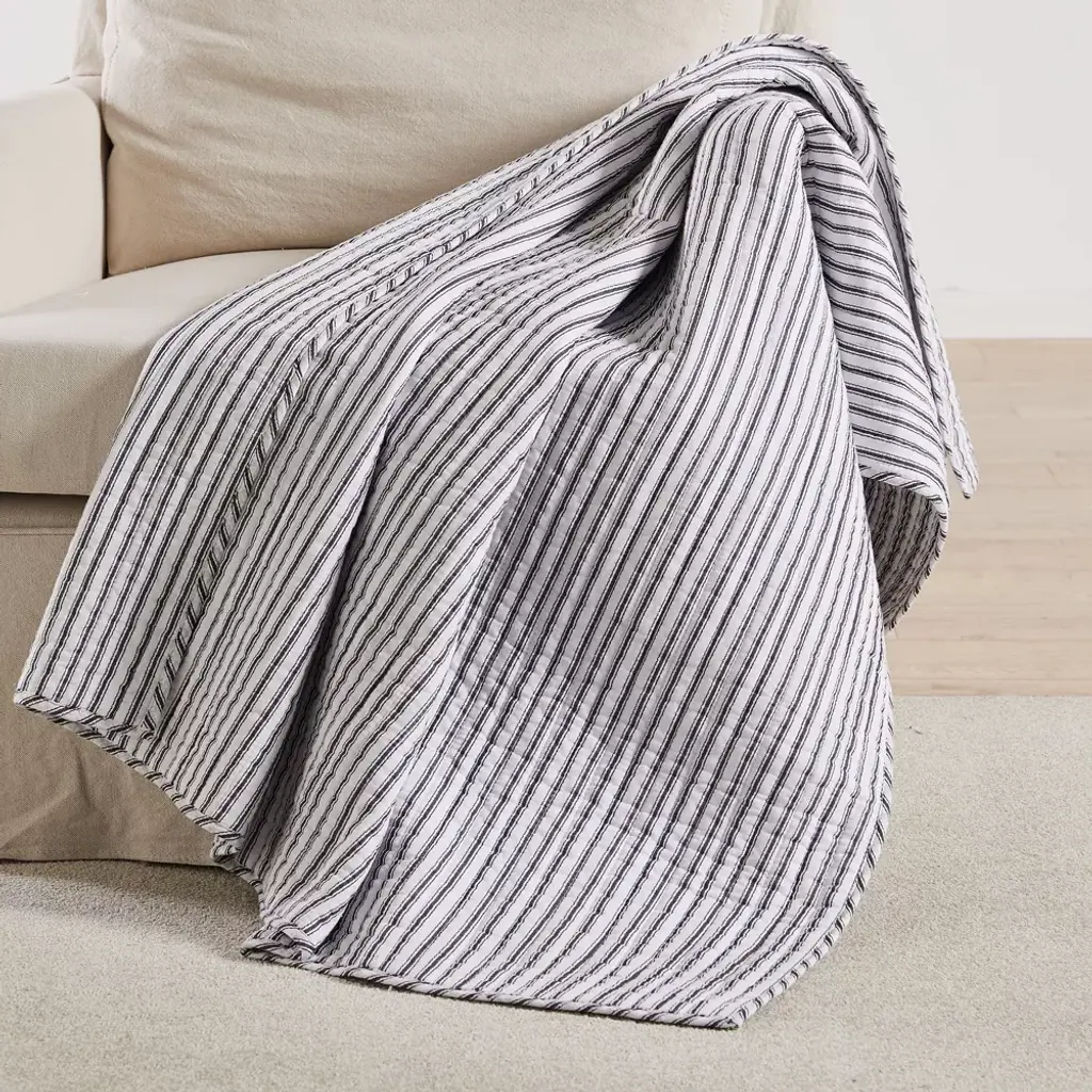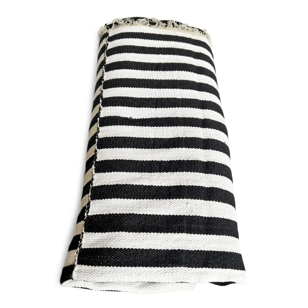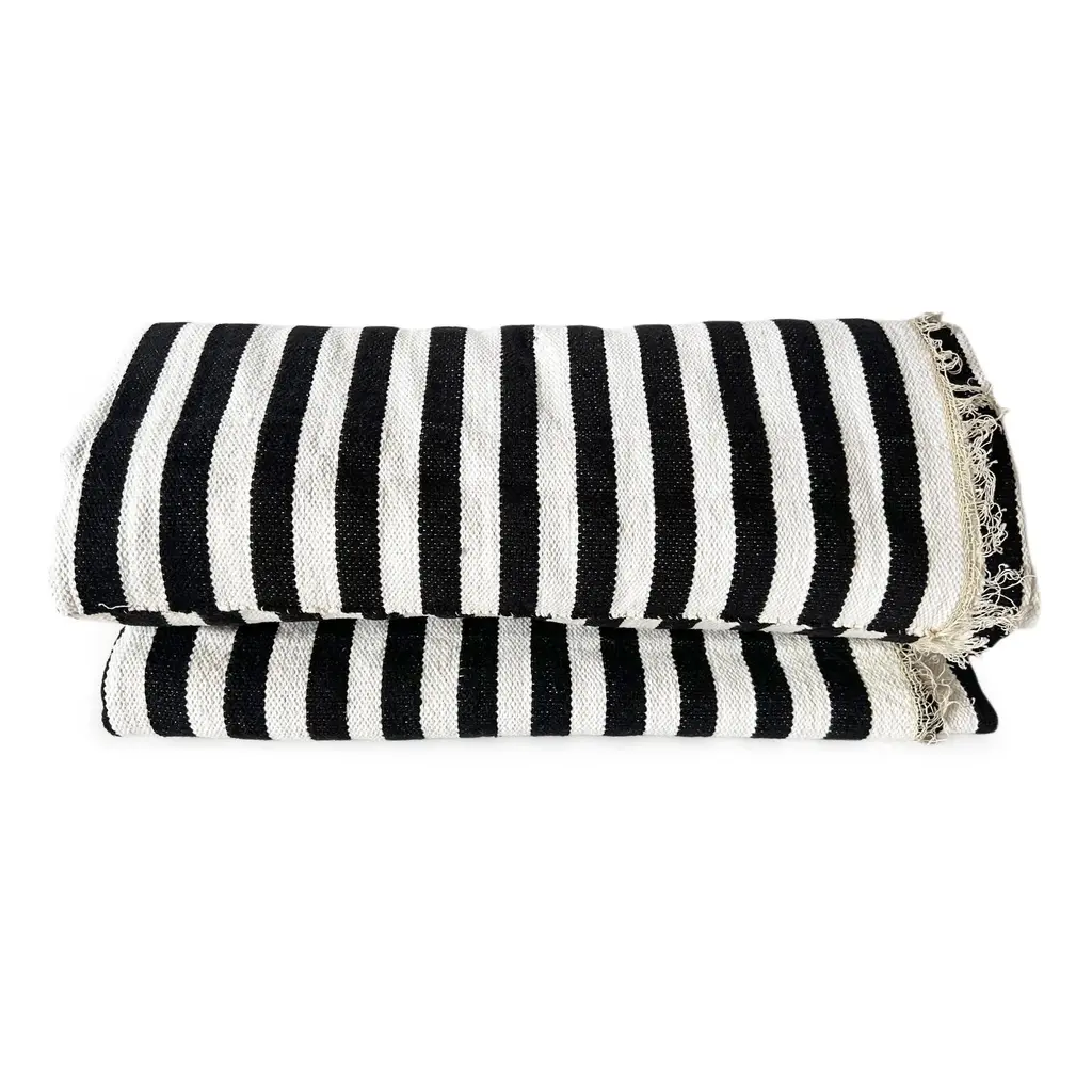 Hand crafted black and white striped textile / blanket from Burkina Faso. Each may have slight variations in handmade and fabric qualities.