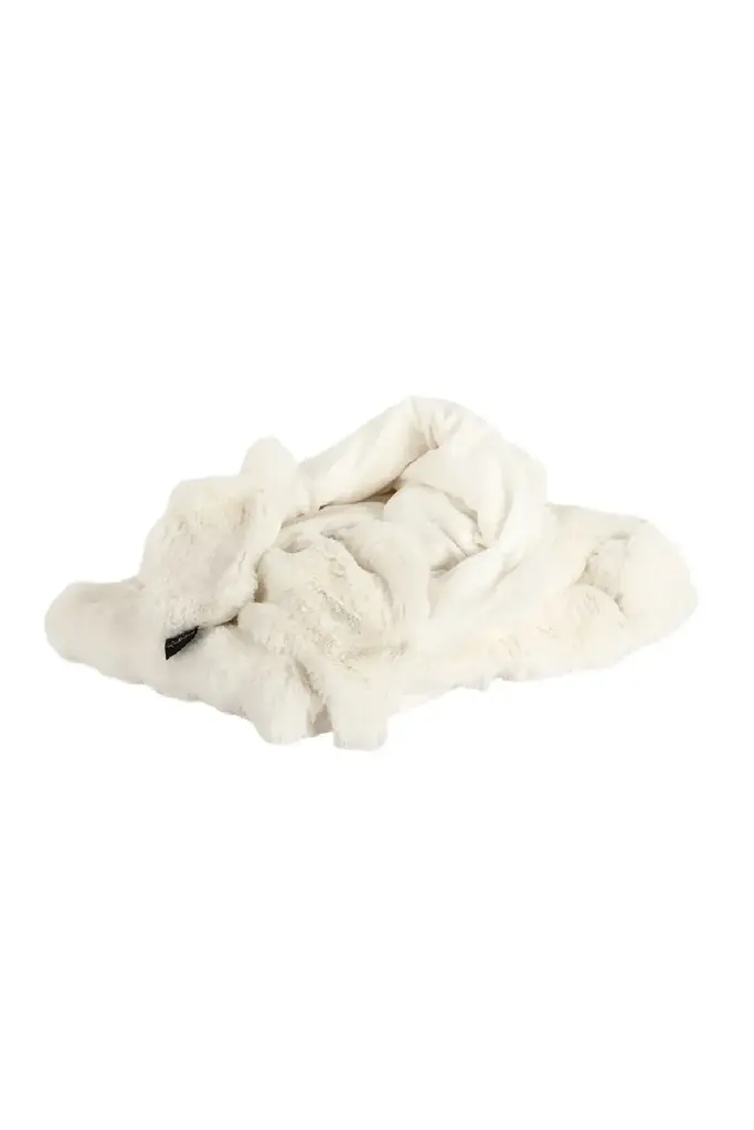 Finally, fur you can feel good about. "Upcycled" 100% Toscana sheep fur from Spain is created from passed-over scraps from an Italian glove company carefully sewn together to create a blanket fabric that becomes a generous generous blanket completely drapes a Queen bed and just covers most Kings or is a large King throw. Versatile and luxurious, lined with color coordinated JG Switzer signature 100% 19mm silk charmeuse.Hand tailored and upcycled means each piece has its own unique character and no two will be exactly alike. We inspect every inch, but real fur will have inconsistencies in the pieces. Dimensions: Generous as a throw on a King bed or a full Blanket cover for a Queen at 95" x 75".