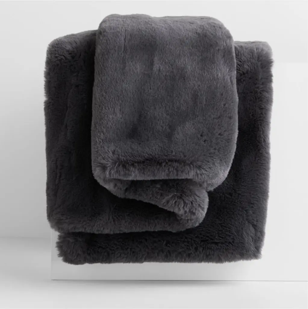 Black Toscana Sheep Fur Full Size Blanket With Silk Backing By Jg Switzer