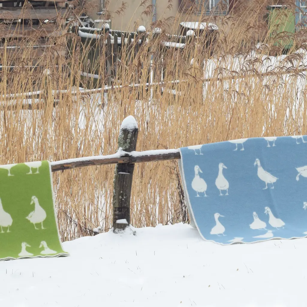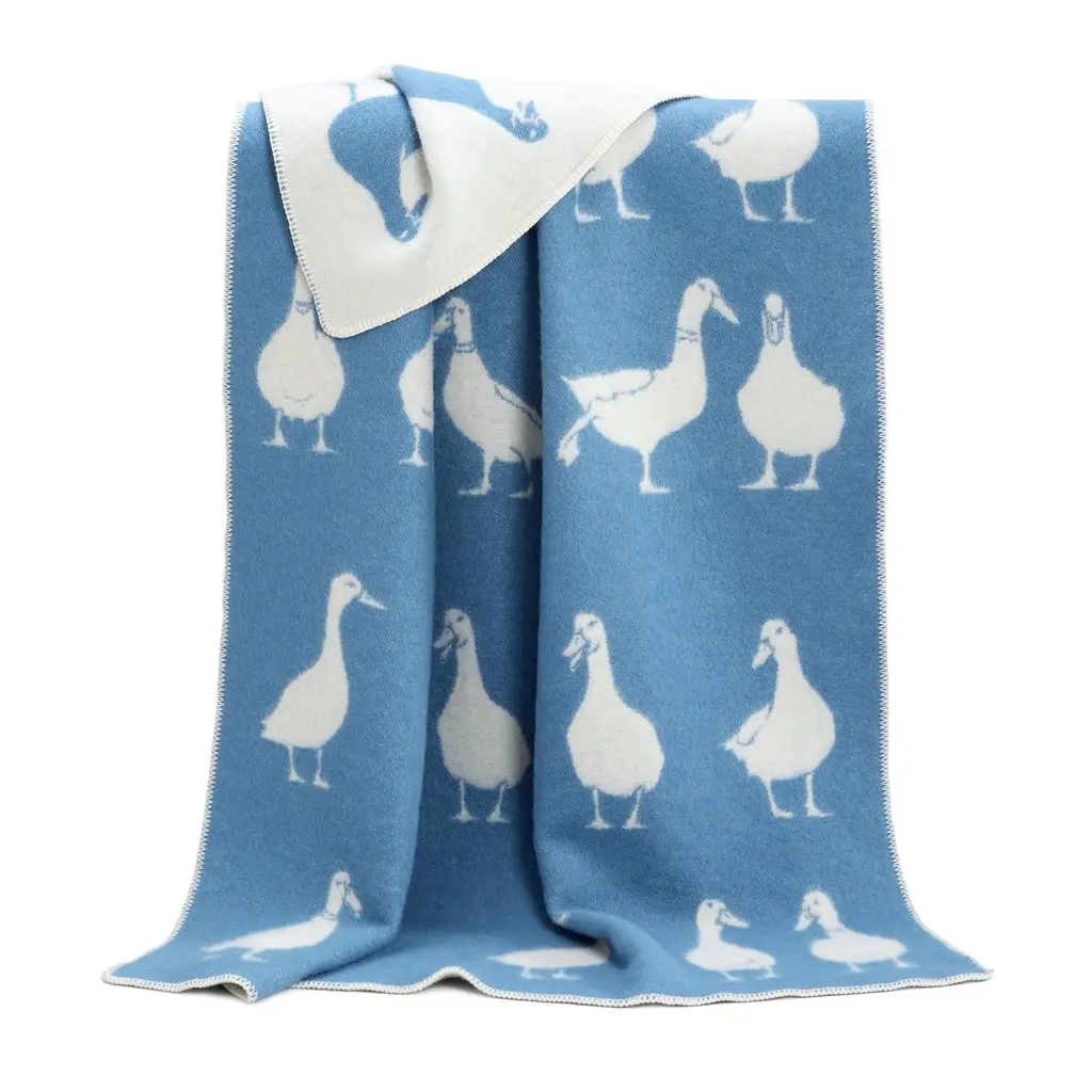 Have you got your ducks in a row? This blanket definitely has. In a stunning blue and white colour-scheme, this stitched blanket will add a pop of colour to your living room or bedroom. It measures 130 x 190cm (51 x 75in) and is woven from 80% wool and 20% cotton. The perfect size to snuggle into. Happy living with friendly designs!80% Wool/20% Cotton | Blue/Off-White | Machine Washable | Reversible
