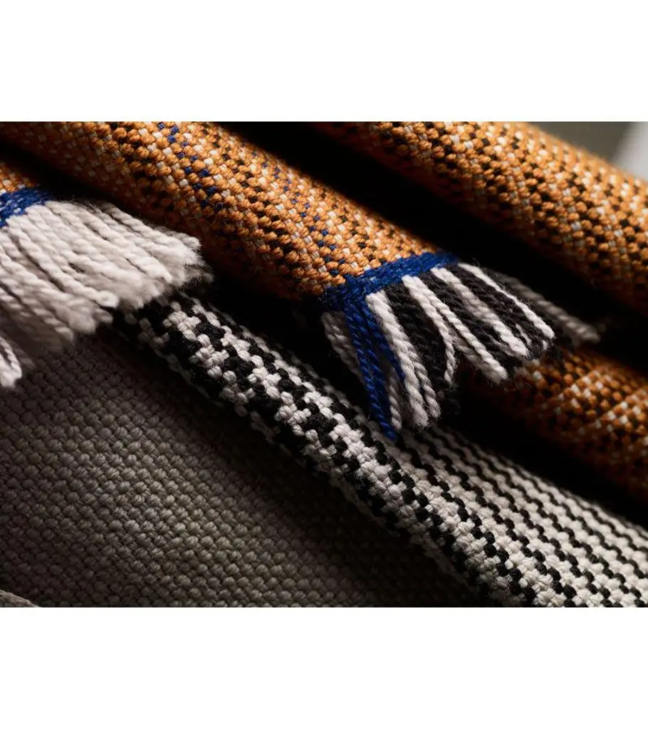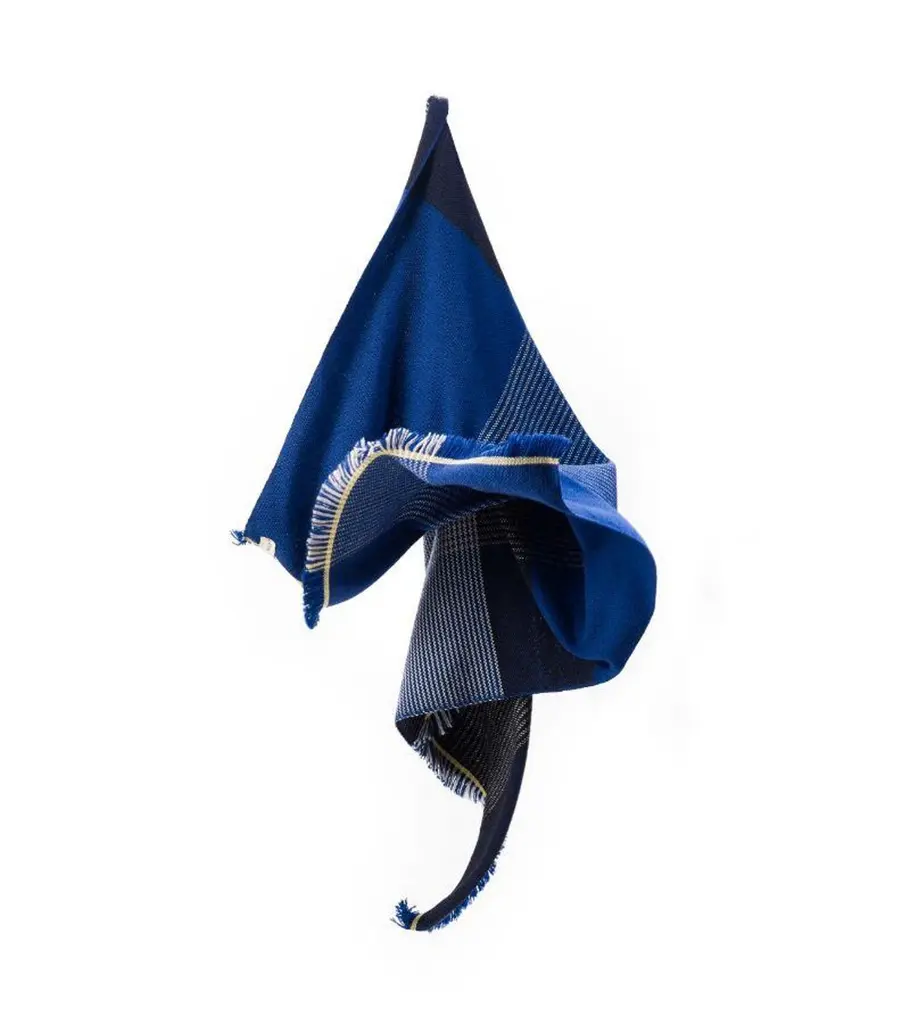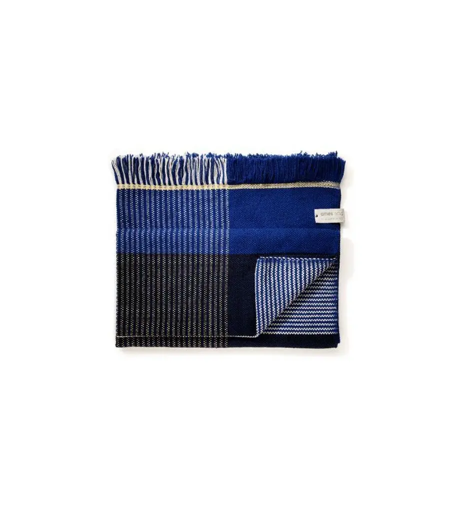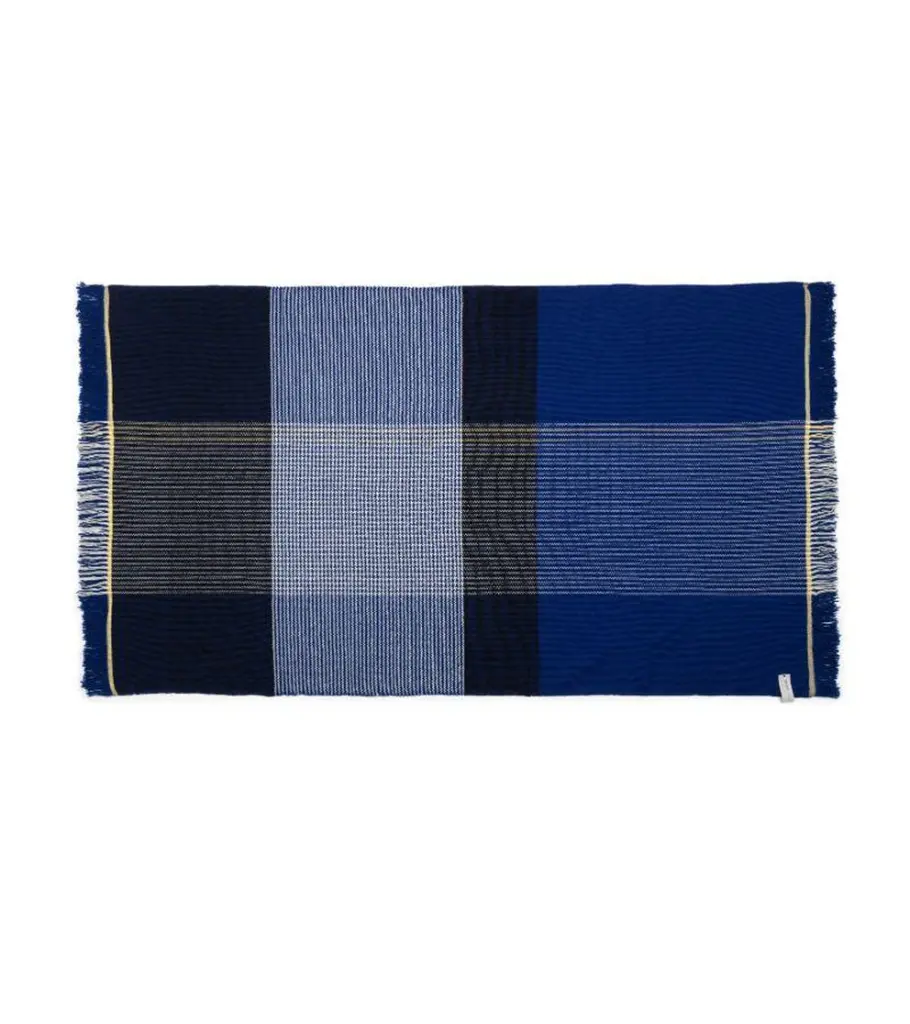 Blue Plaid Ruana by Sebastian HerknerMaterials: 100% natural virgin wool. Technique: Hand-woven in Colombia. Dimensions: W 200 x H 120 cm Available in colors: yellow/ grey/ blue, blue/ black/ yellow, ochre/ green/ rose. The Ruana Blanket is a luxurious, hand-woven blanket made with the finest wool. Sebastian Herkner, who visited Colombia multiple times and met the local craftsmen and craftswomen working for Ames, designed the contemporary pattern and was inspired by traditional Colombian clothing. It features a subtle houndstooth pattern and charming little fringes. The blanket, which is available in three color combinations, is perfect for cuddling up on the sofa or as a plaid for the guest bed. Each blanket is woven by hand on a vertical loom in our Colombian workshops where the local artesanos and artesanas use techniques that have been passed down over generations. They only use threads made from natural virgin wool, which has been dyed with natural pigments. Just the preparation of the wool takes four days, while the weaving takes six days.German designer Sebastian Herkner is a long-term collaborator of Ames and has visited Colombia multiple times to experience the country’s cities, nature and people first hand. He also visited many of the ateliers that Ames has partnered with to learn about the unique traditional crafts of Colombia's regions. A sought-after contemporary designer and recipient of many industry awards, he has worked with many international design brands, creating intriguing pieces that showcase his intuition for interesting material, color, and texture combinations.