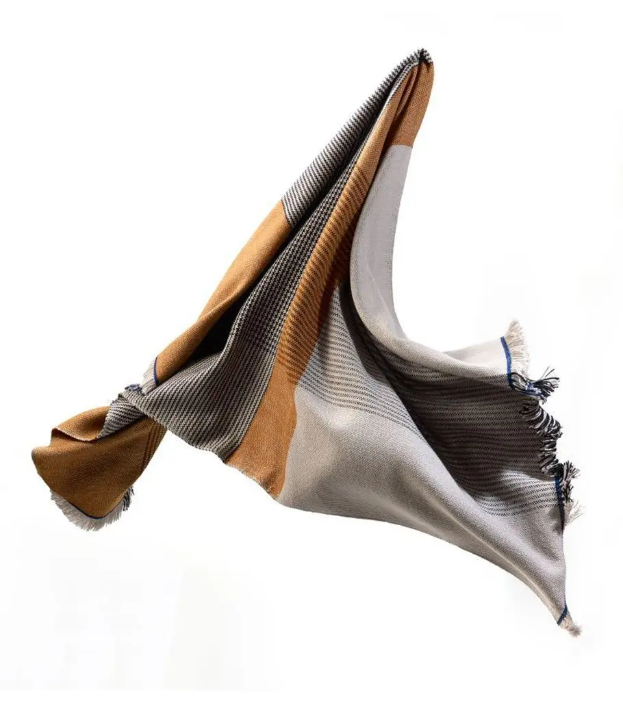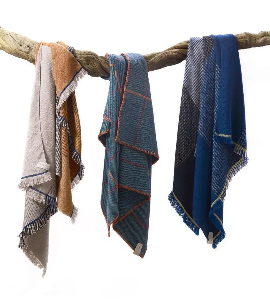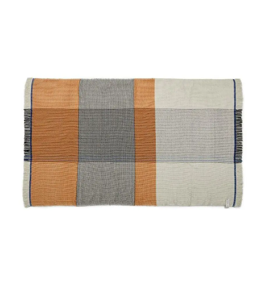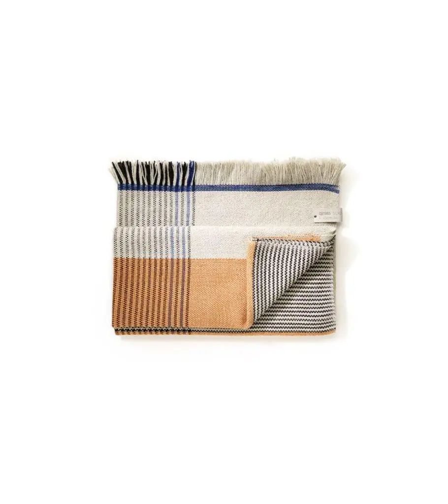 Blue Plaid Ruana by Sebastian HerknerMaterials: 100% natural virgin wool. Technique: Hand-woven in Colombia. Dimensions: W 200 x H 120 cm Available in colors: yellow/ grey/ blue, blue/ black/ yellow, ochre/ green/ rose. The Ruana Blanket is a luxurious, hand-woven blanket made with the finest wool. Sebastian Herkner, who visited Colombia multiple times and met the local craftsmen and craftswomen working for Ames, designed the contemporary pattern and was inspired by traditional Colombian clothing. It features a subtle houndstooth pattern and charming little fringes. The blanket, which is available in three color combinations, is perfect for cuddling up on the sofa or as a plaid for the guest bed. Each blanket is woven by hand on a vertical loom in our Colombian workshops where the local artesanos and artesanas use techniques that have been passed down over generations. They only use threads made from natural virgin wool, which has been dyed with natural pigments. Just the preparation of the wool takes four days, while the weaving takes six days.German designer Sebastian Herkner is a long-term collaborator of Ames and has visited Colombia multiple times to experience the country’s cities, nature and people first hand. He also visited many of the ateliers that Ames has partnered with to learn about the unique traditional crafts of Colombia's regions. A sought-after contemporary designer and recipient of many industry awards, he has worked with many international design brands, creating intriguing pieces that showcase his intuition for interesting material, color, and texture combinations.