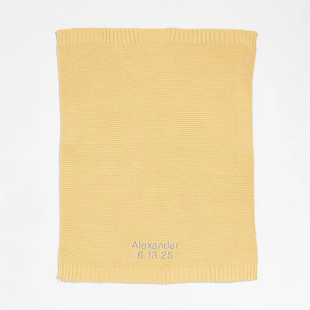 Crafted with a mix of knitting stitches, our bubble knit stroller blanket creates the cozy, comfy texture that babies love in cheery straw yellow. The supersoft, durable acrylic material provides an insulating layer from cooler weather, and the fiber is breathable to keep little ones at a comfortable temperature when out and about. Evoking the cuffs of a favorite sweater, the blanket's broad border stands up to tugs from tiny fingers. Plus it's machine washable to help maintain its beauty for years to come.