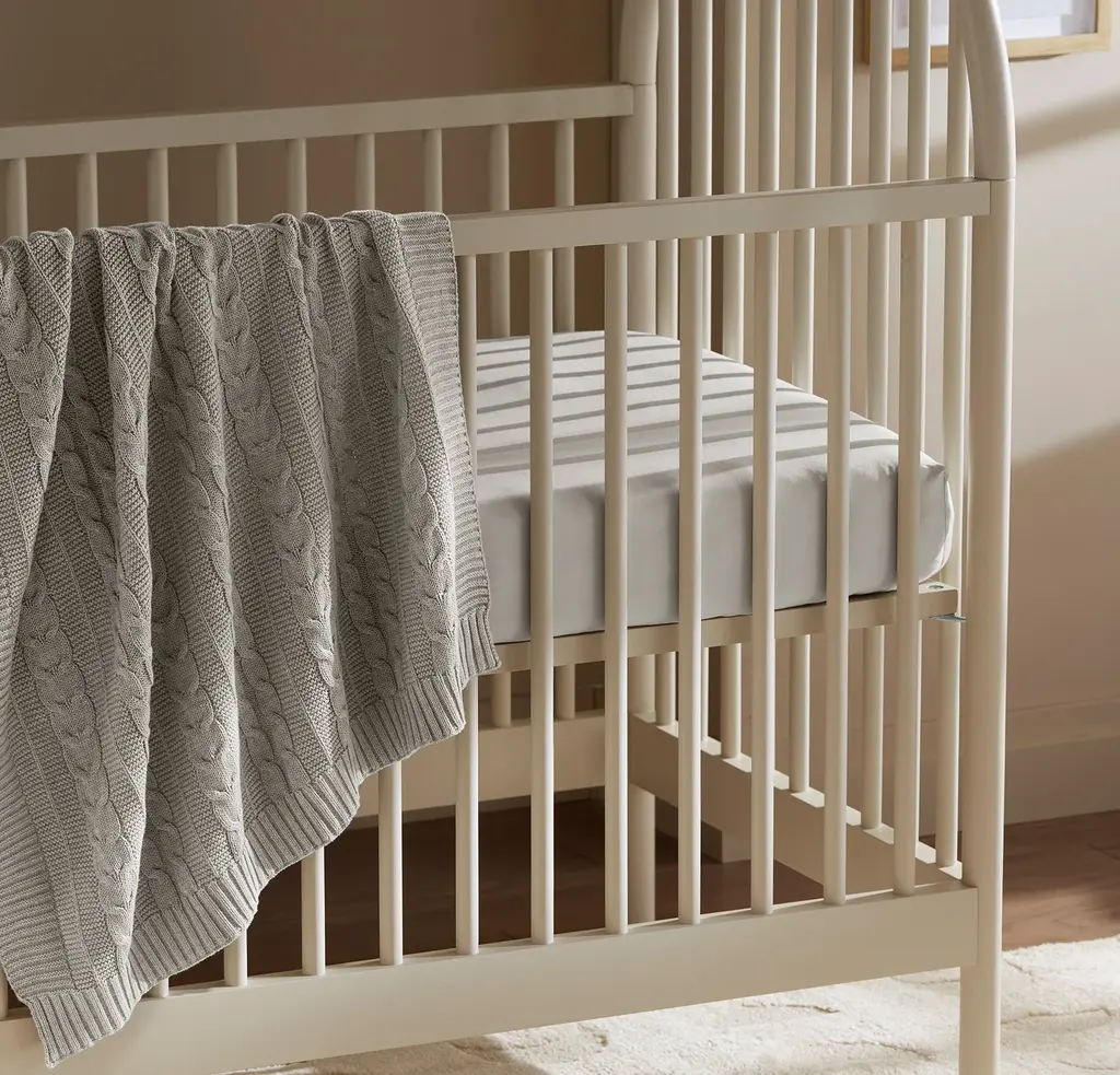 Made for sweet dreams and even sweeter snuggles: this timeless cable knit blanket is exceptionally soft, and balances a hint of warmth with a breathability. It starts with the highest quality yarns sourced from the finest long-staple 100% organic cotton on earth. Parents will love the easy care of this machine-washable layer, and its oversized dimensions that can follow baby as they grow from a standard crib to a toddler bed.
