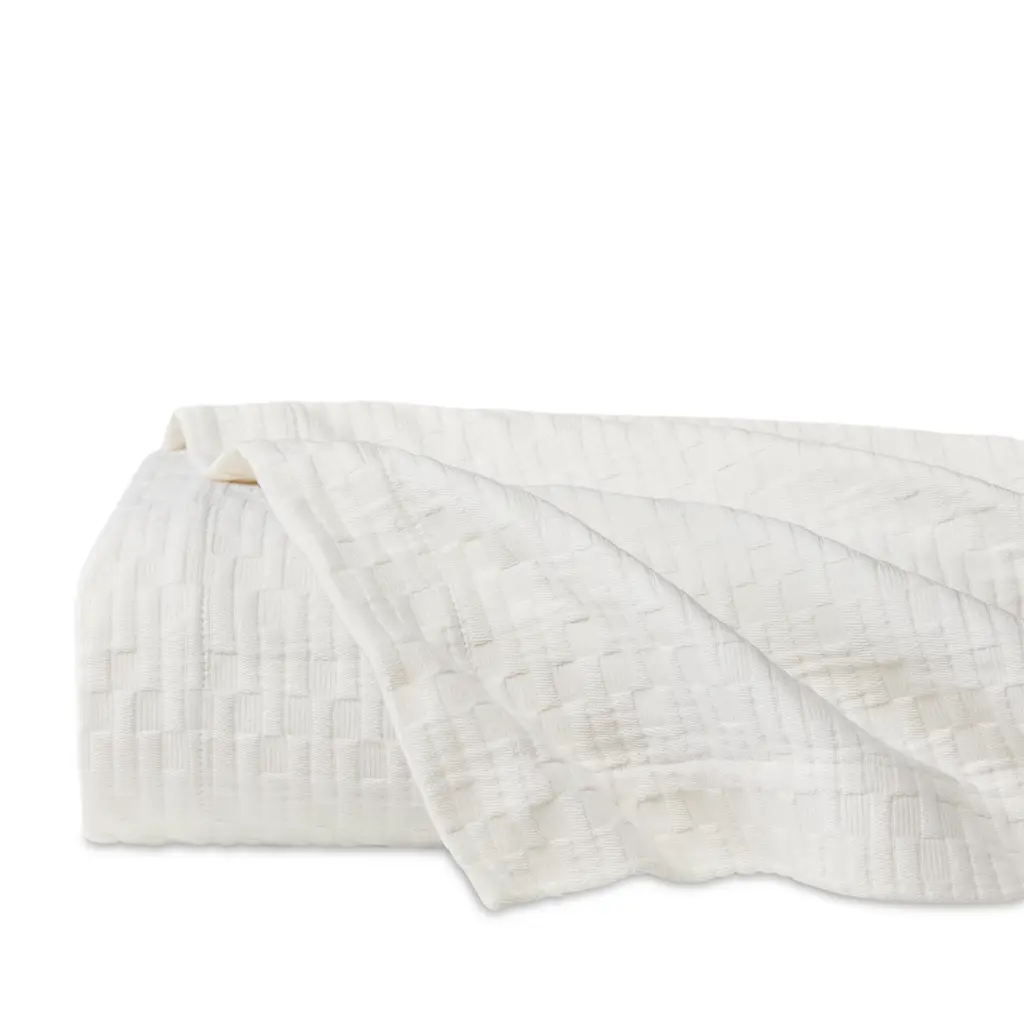 Sleep in supreme comfort - not too heavy, not too light! From the finest fibers, this white cable knit patterned blanket in bright white offers a refreshing update as well as an invitation for restfulness. Woven in Maine to last a lifetime!