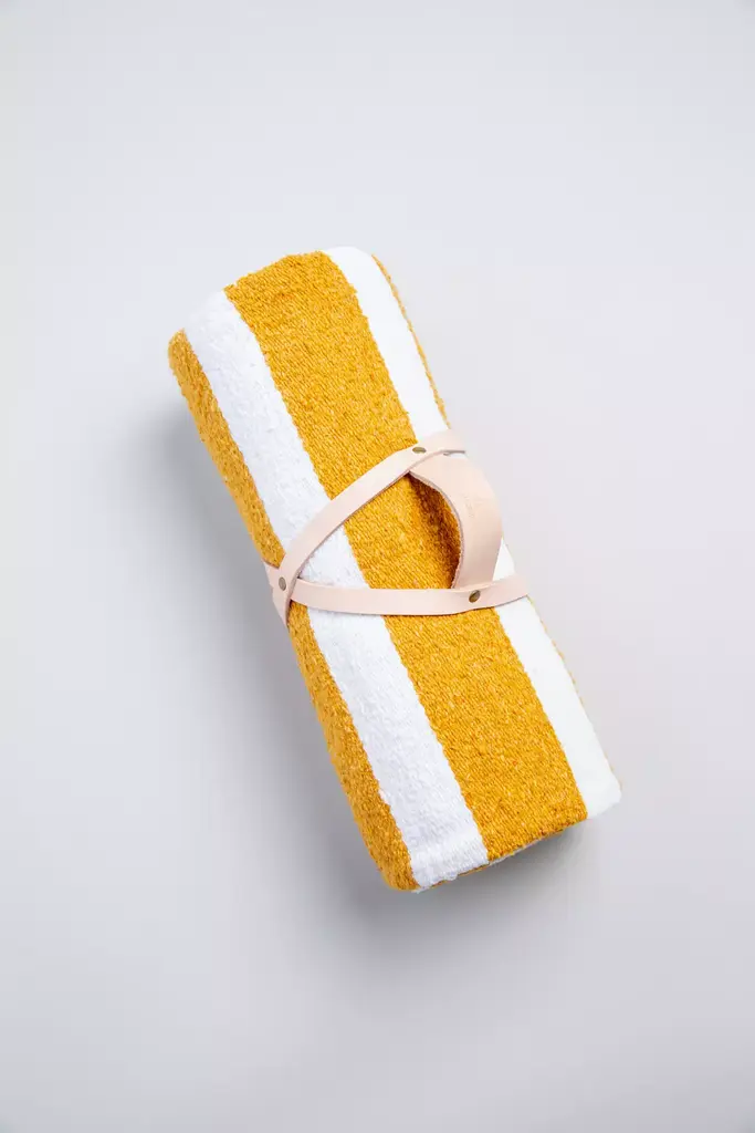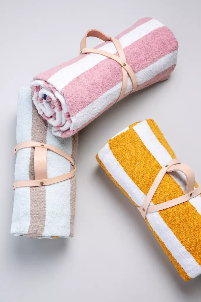 The Marea collection features an updated take on a simple stripe pattern, a gradient of color from one side of the blanket to the other. The blanket comes rolled up in a handmade leather strap and is ready to take outside Caminito partners with makers in Mexico to design and produce a line of goods with each piece paying tribute to Mexico's color and craft. Each woven blanket is made with recycled fibers from clothing manufacturing remnants and comes rolled up with a handmade leather strap. Our collection of functional goods proudly supports traditional makers and their communities in both Mexico and California.* Recycled fibers 50% polyester, 30% acrylic, 20% cotton* Blankets are machine washable on cold gentle cycle, lay flat to dry.* Imported#### *Dimensions* * Unfolded: 83" H x 51" W * Rolled: 16.5" L x 6.5" W