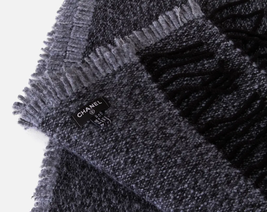 Chanel New Gray Black Cashmere Blanket