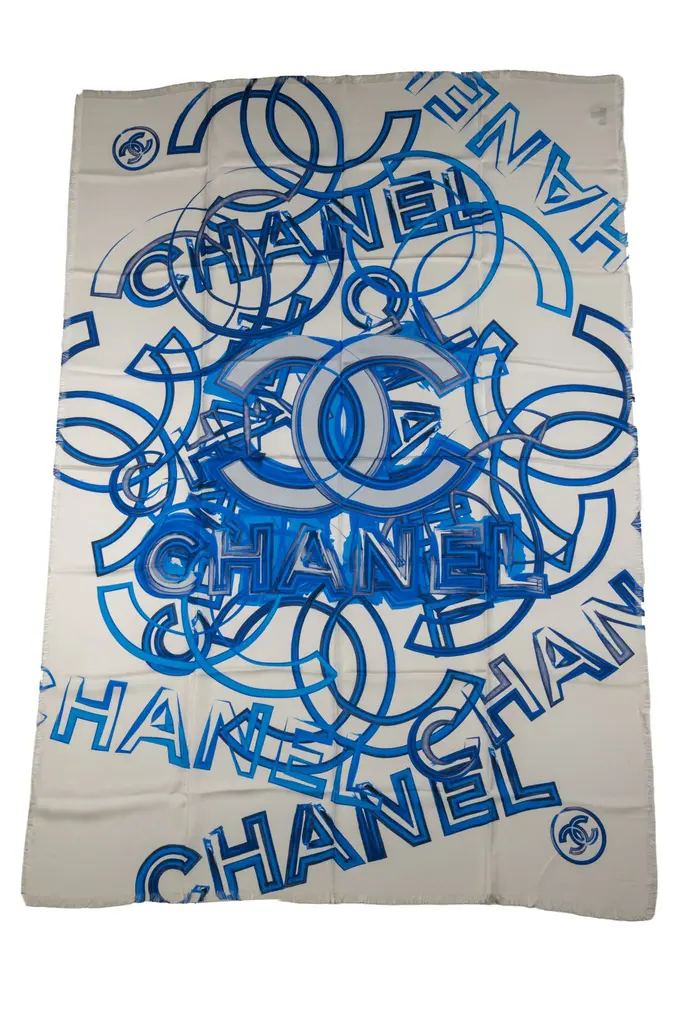Chanel blanket crafted from a blend of merino wool and cashmere, 2014. In new condition with dust cover, box, and ribbon.