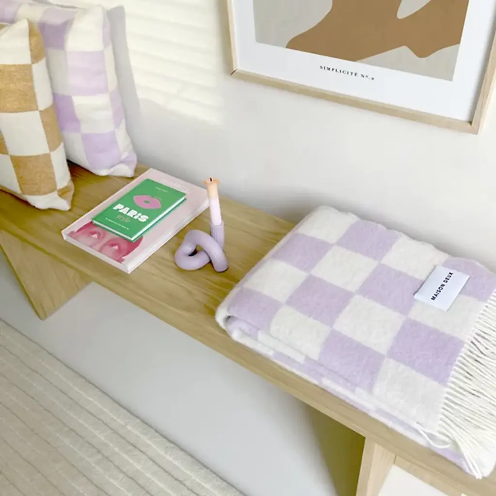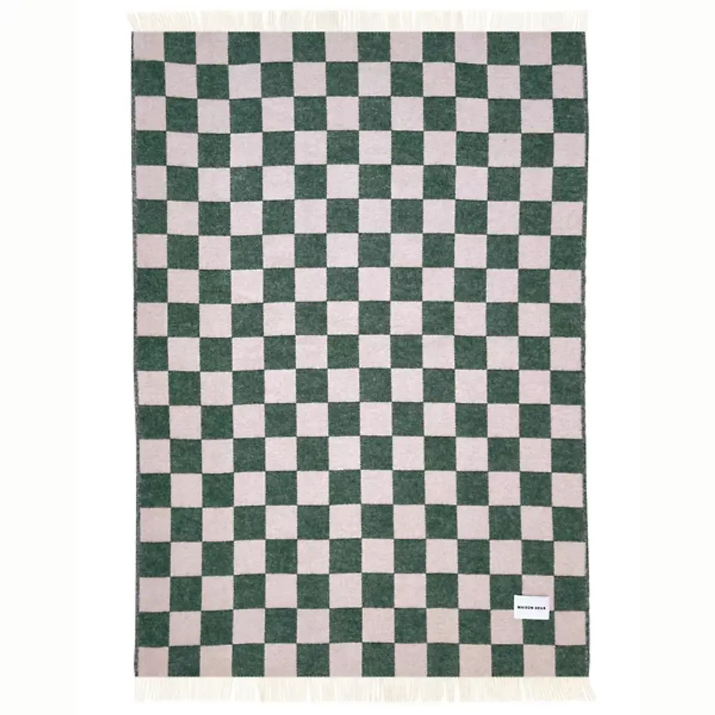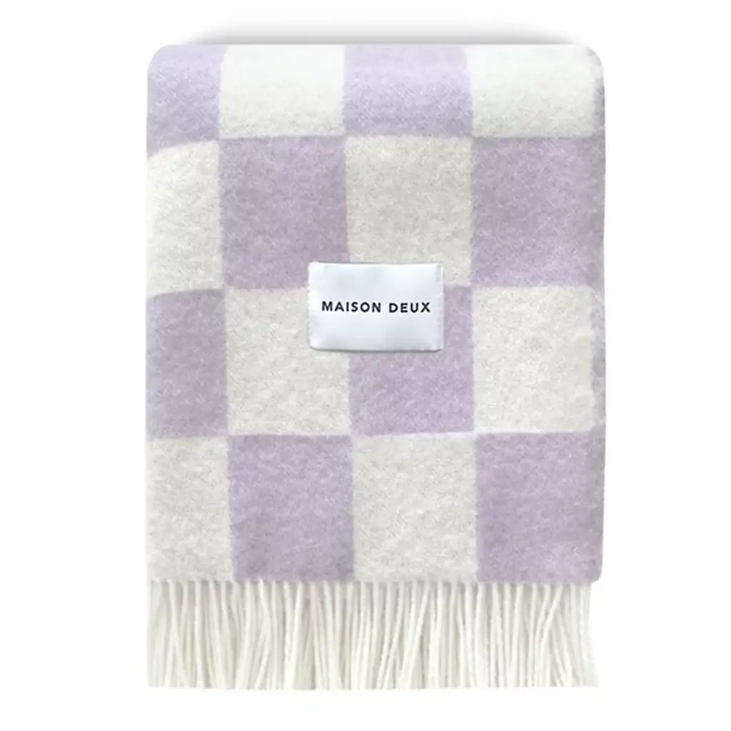 The Checkerboard Blanket from Maison Deux brings both comfort and style to your living space. Woven from 100% New Zealand wool, this thick, premium blanket features fringed edges on its short edges and a reversible design with a mirror-inverted pattern for playful versatility. It’s certified by Woolmark and OEKO-TEX for its natural, renewable, and biodegradable qualities, perfect for cozy nights alone or with company. Made in Lithuania, it’s a sustainable choice with mid-century modern appeal.