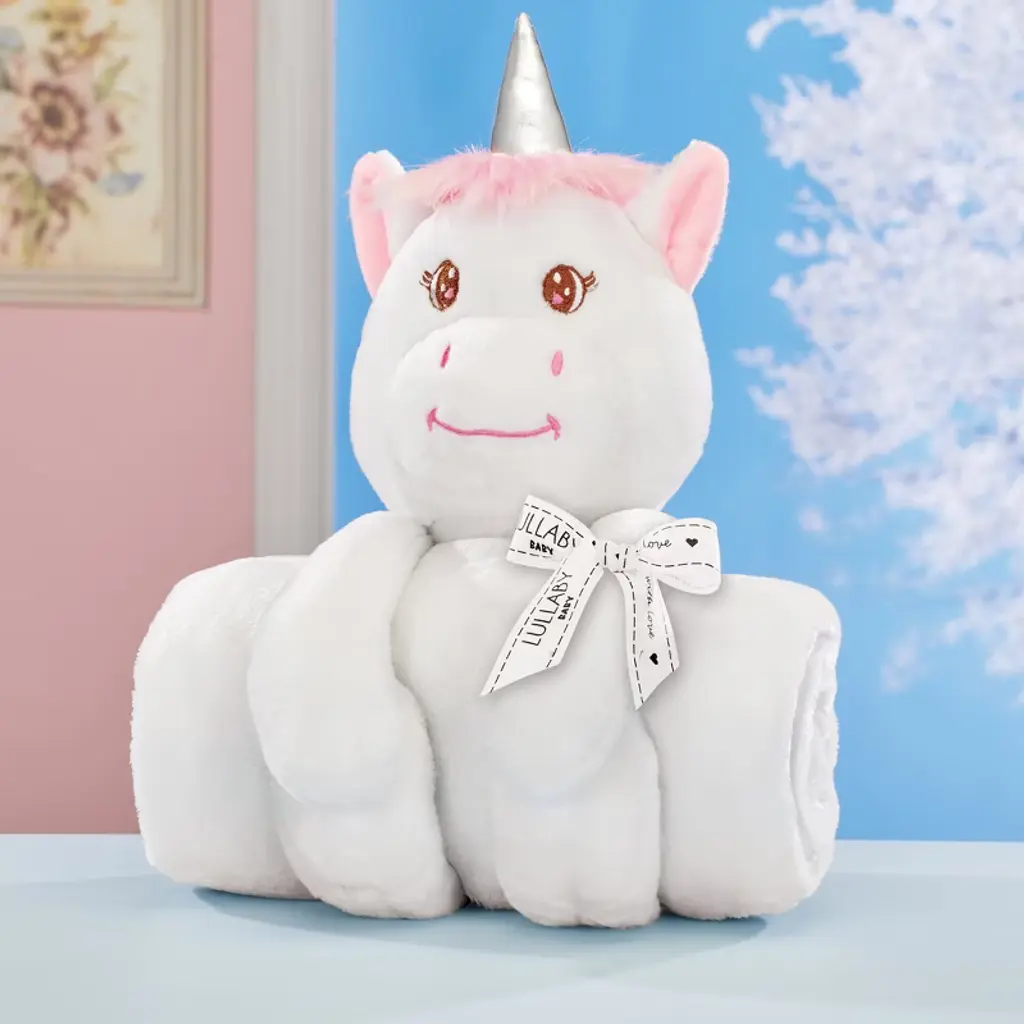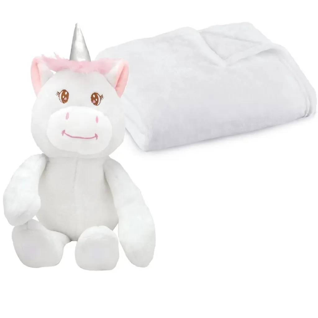 A Delightful Gift For A New Arrival, This Plush Toy Comes With A Super Soft Baby Blanket That Rolls Up And Is Held In It's Paws. Choose The Brown Bear, The Pink Bunny, The Blue Dog Or The White Unicorn. Machine Wash. Polyester; Imported. Plush Toy Is 19"L X 17"W And Blanket Is 40"L X 32"W. Choose: Dog, Bunny, Bear Or Unicorn.