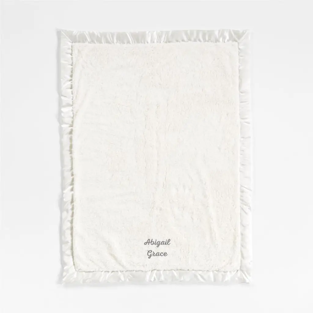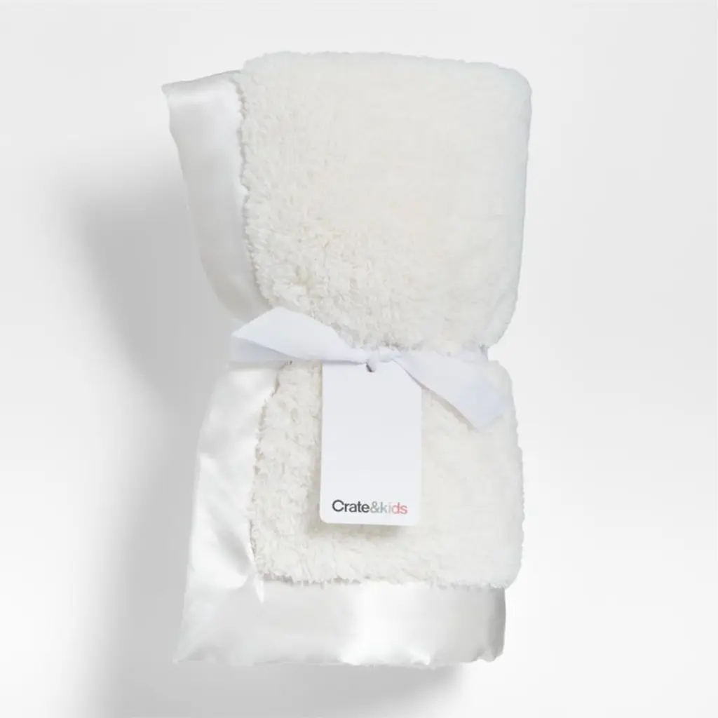 The fleecy texture of our satin-trimmed baby blanket in cream is so soft, you'll wish it came in adult sizes too. Available in a range of soothing hues, each blanket features a satin edge for a refined look.