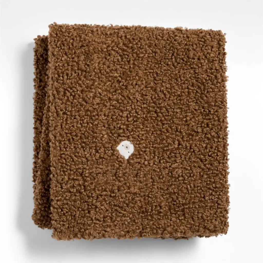 Made for snuggles, the fleecy texture of our cuddly Sherpa Bear Face stroller blanket is so soft you'll wish it came in adult sizes too. In a gorgeous maple brown hue, the blanket features a sweet tossed pattern of embroidered bear faces and reverses to a luxe recycled polyester velvet.