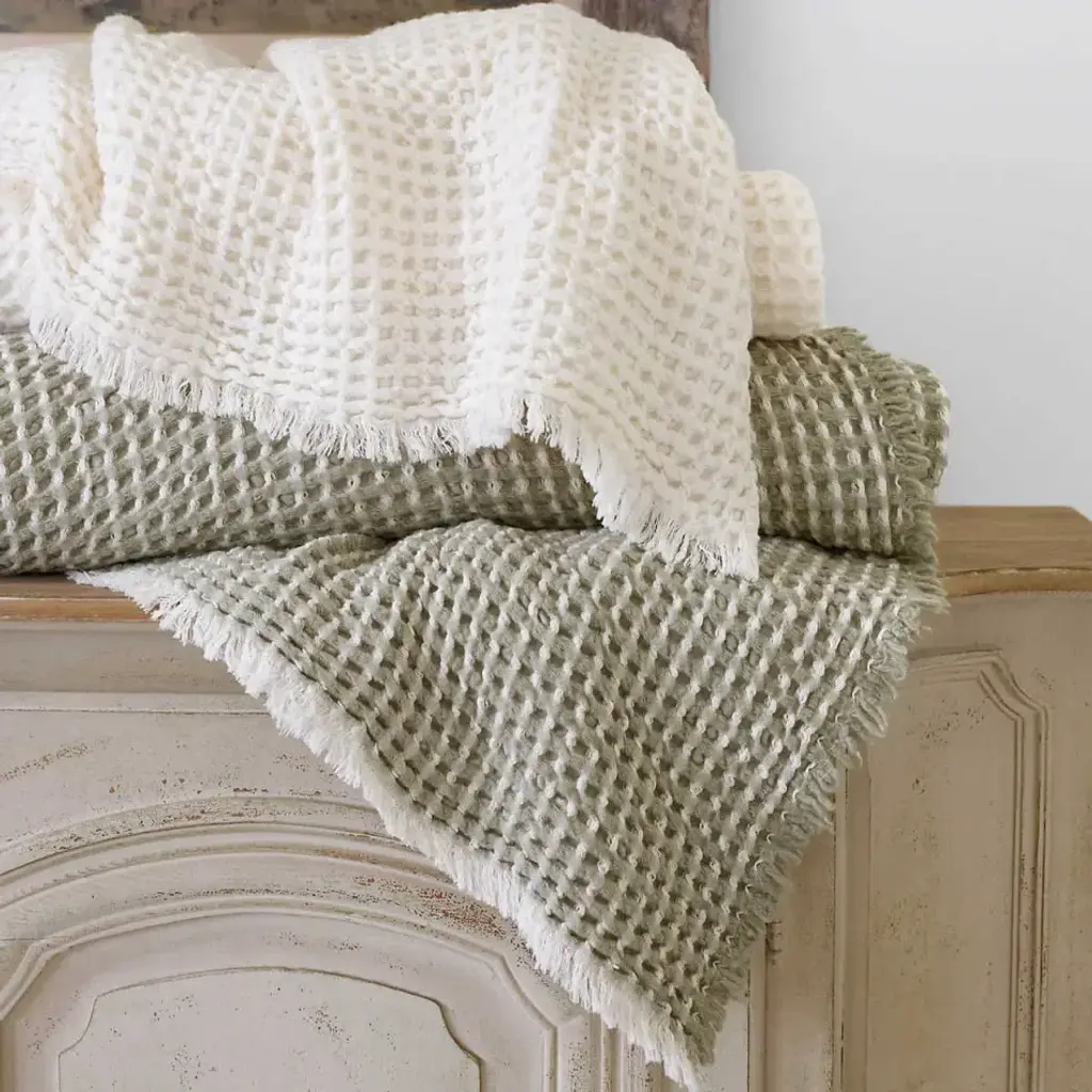 Warm and inviting, this extra layer for any bed is lofty, frothy, and woven in Portugal to look and feel like the softest of sweaters. In a buttery blend of cotton and soft wool, this whisper-weight waffle stitch blanket is made extra comfy and cozy with parallel ridges of tucked ribs for a feast of lightweight texture and insulating comfort. Designed for us by Marie Flanigan, an award-winning interior designer and principal of Marie Flanigan Interiors, to reflect her signature style of timeless elegance and innovative simplicity. Pine Cone Hill’s fresh, fun home linens have been making waves in the home design industry since 1994, when Annie Selke started the business with a sewing machine in her dining room. From the very beginning, Annie’s Pine Cone Hill creations have consistently wowed the home décor industry. Each month, her innovative designs and interiors are splashed liberally throughout the pages of top shelter magazines.