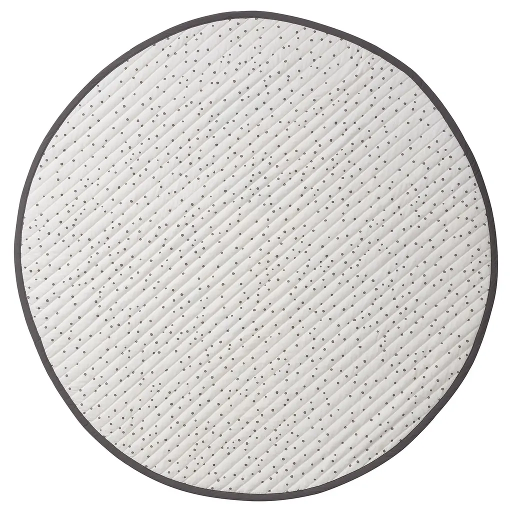 DRÖMSLOTT Quilted blanket - puppy pattern dot pattern/yellow white 41 ". The fabric on the front and back of the blanket is made from 100% sustainably grown organic cotton – a durable natural material that gets softer with each wash. Easy to clean; machine wash, warm 104°F (40°C).