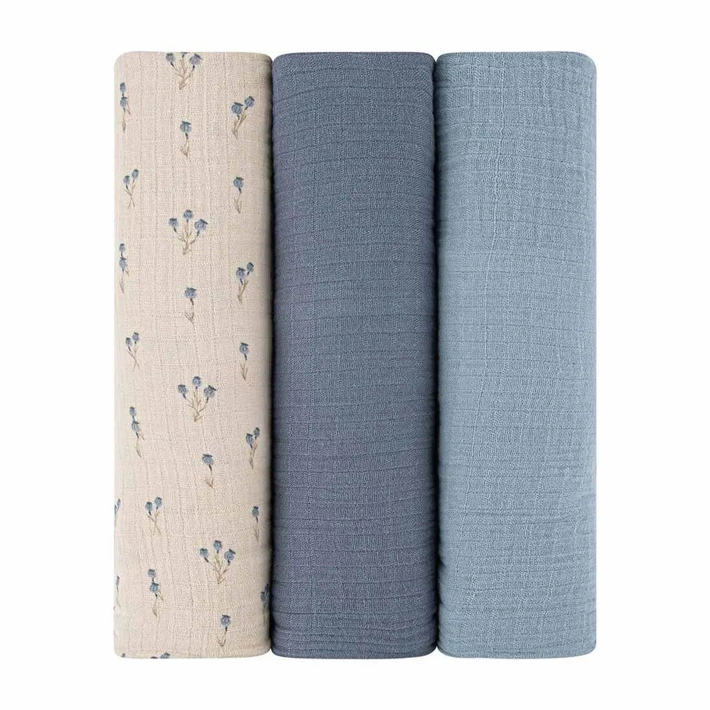 Ely's & Co. Cotton Muslin Swaddle Blanket - 3 Pack - 42"x42" - 0-24 Months - Blue Nautical