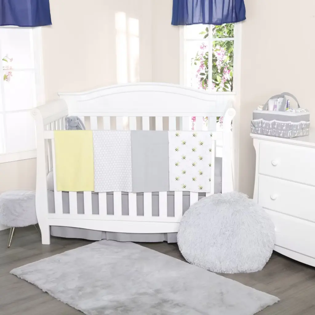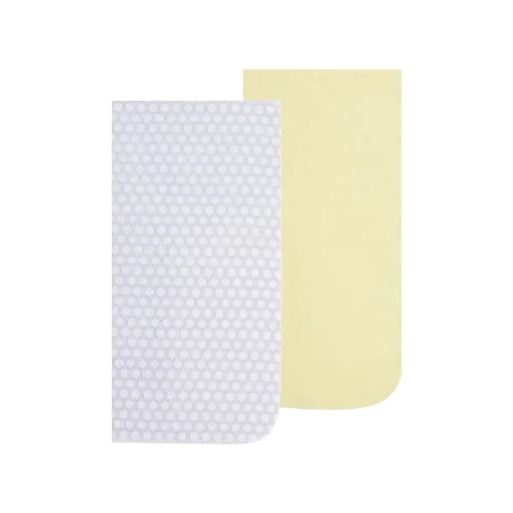 Wrap your infant within our adorable receiving blankets made of ultra-soft cotton flannel! Each is the perfect weight - not too lightweight, but not too thick, so great for swaddling, tummy time and cuddling!The swaddling and receiving blankets are adorned with cute prints and solids in beautiful shades of light gray and sunny yellow! One is designed with bumble bees in flight while another features a sweet honeycomb pattern! Two solid color blankets accent the prints perfectly!Each blanket measures 30” x 30” and is made with hardy, yet very soft cotton flannel, which retains its shape wash after wash! And with 4 receiving blankets in this essential baby layette set, you’ll have plenty between laundry days! With Everyday Kids, your children will always be comfortable and cute!