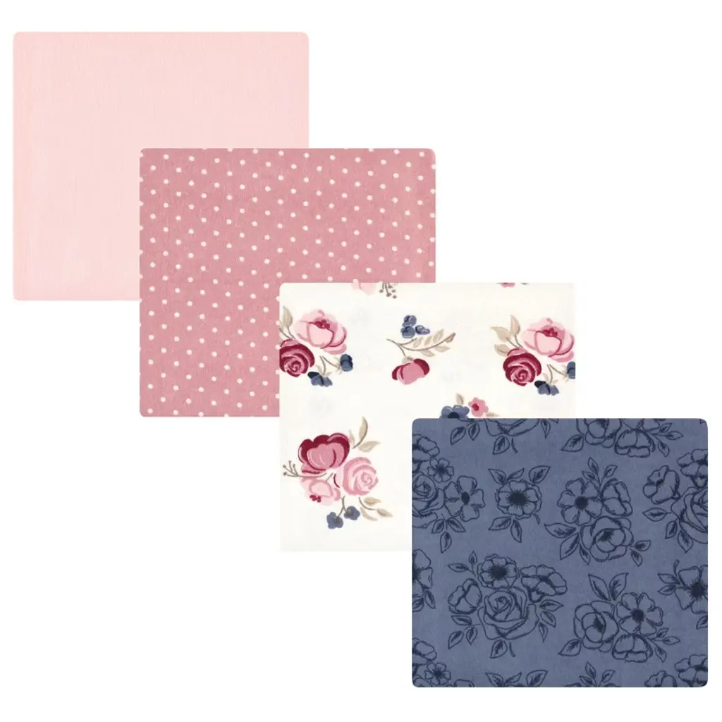 Everyday Kids 4-pack Flannel Receiving Blankets – Soft Swaddle Set For Newborns With Flower And Stripe Designs