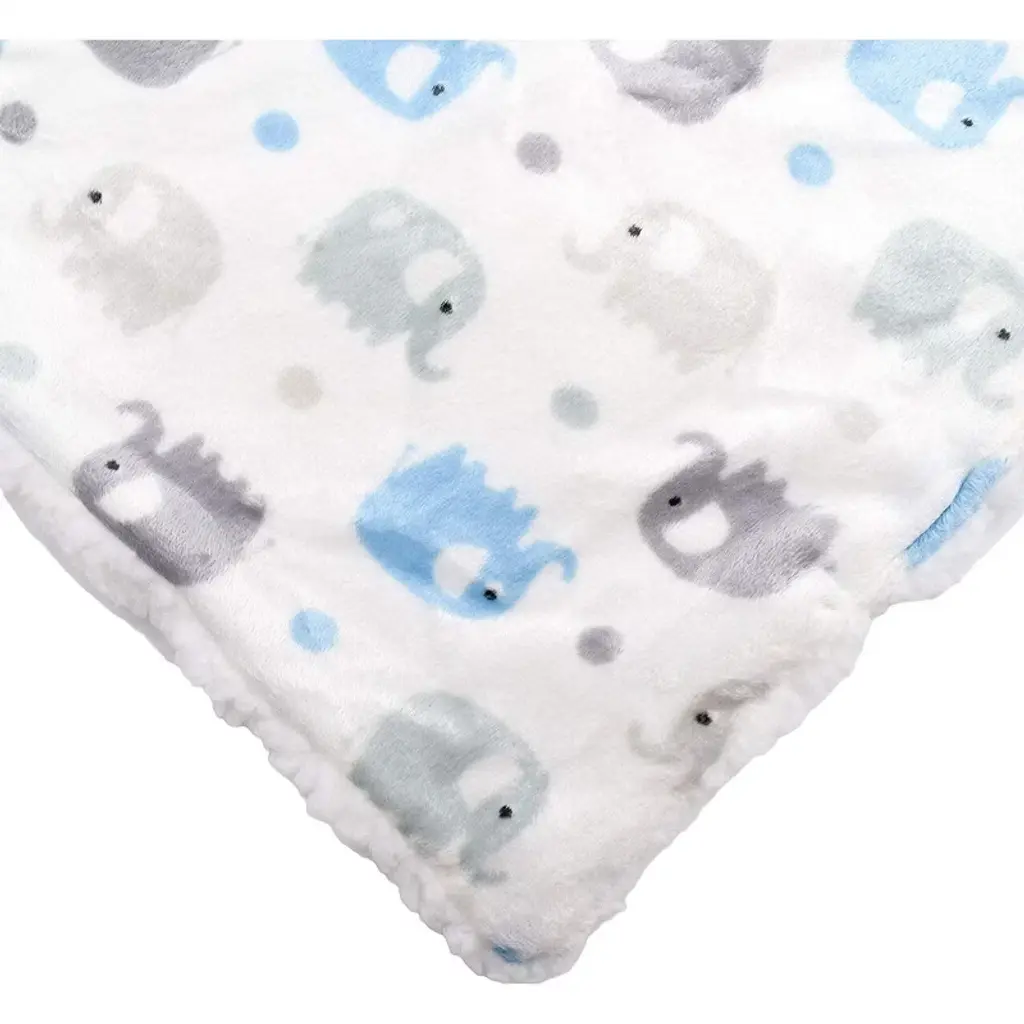 Everyday Kids Gray And Blue Elephant Baby Blanket – 30" X 40", High Pile Fleece And Mink,