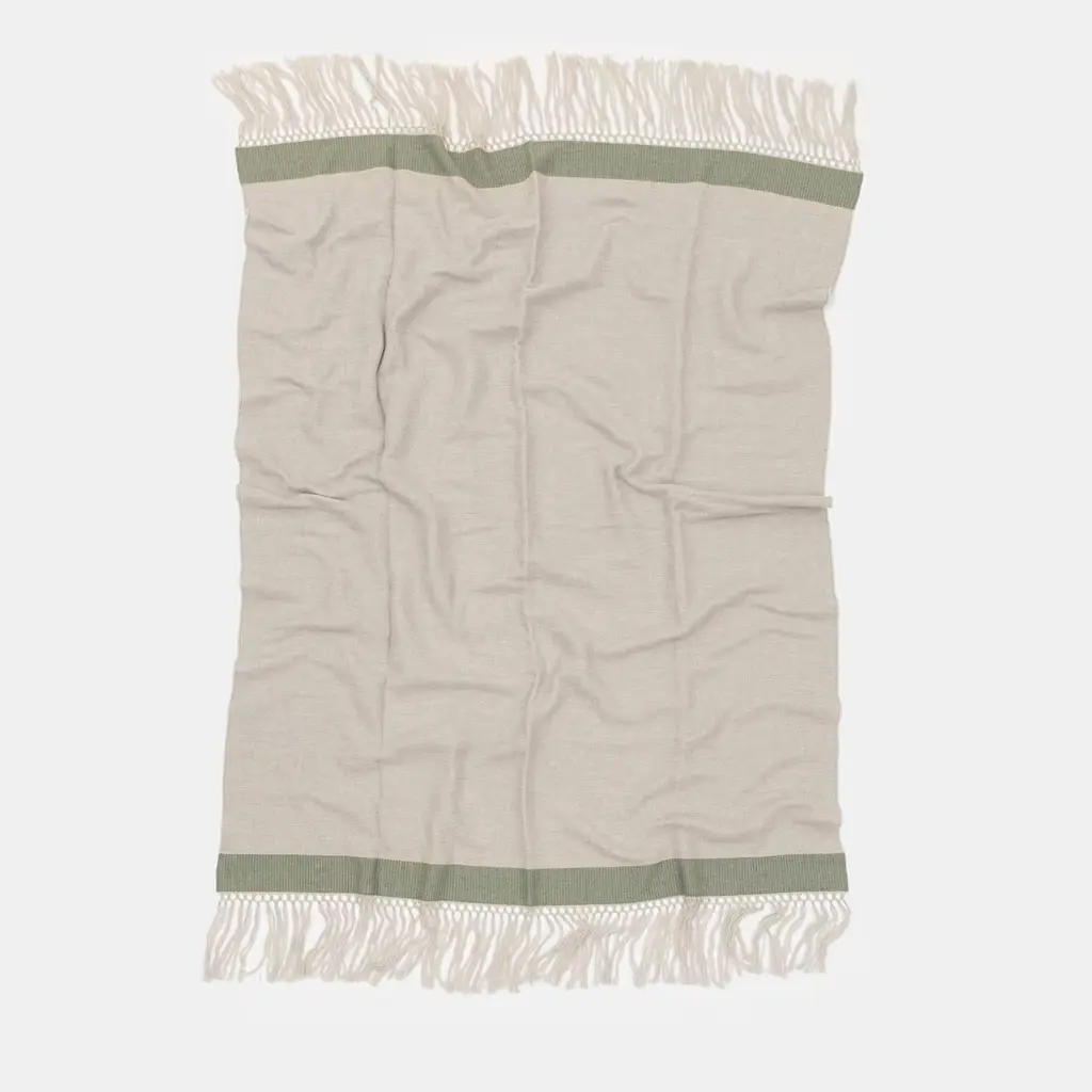 Patiently knotted by hand only employing first-rate Merino yarn this blanket makes for the ideal solution when seeking extra warmth. Its weft's precious artisan quality acquires a dash of liveliness considering the horizontal green decorative band that runs along the entire 20cm-long hand-knotted fringed profile. Please explore more color options in the Artemest catalog.